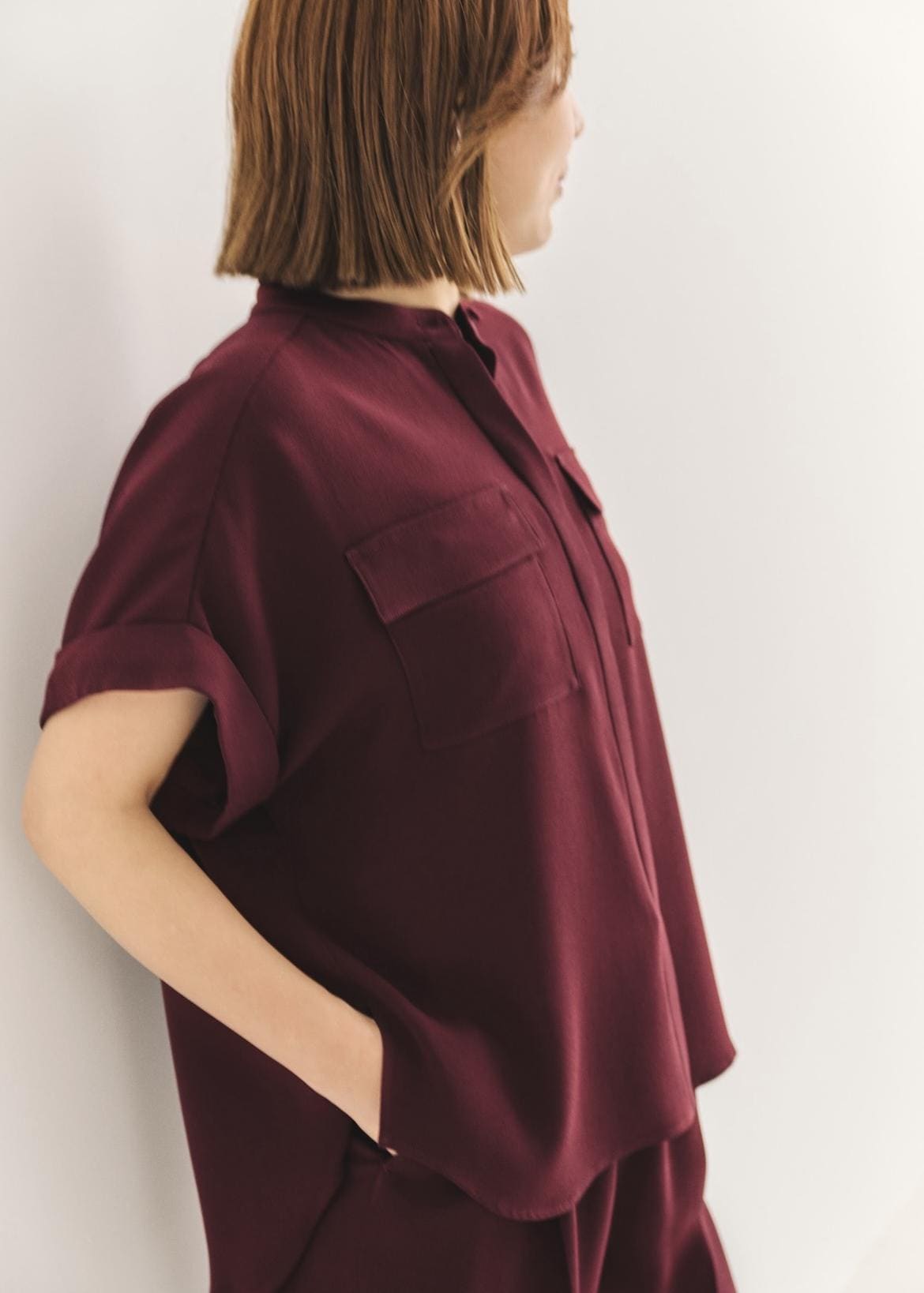 ROPÉ【洗える・カセット服】バックサテンフラップブラウス/お仕事・通勤・セットアップ対応【ドラマ着用】ワイン / F¥25,300レビューゆったりめなサイズ感で肌離れもしれてくれるので