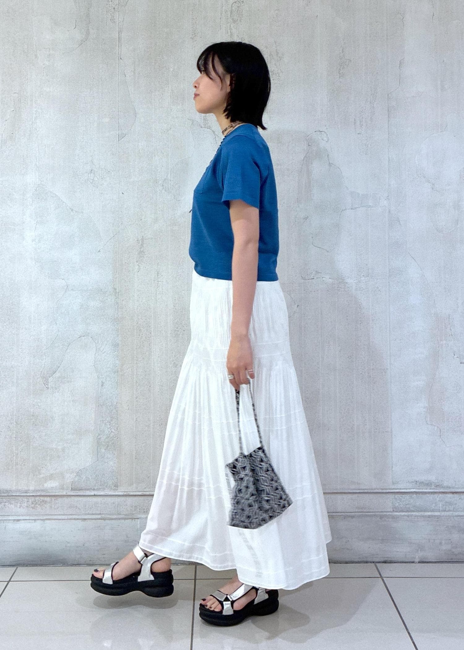 着丈の長いスカートには、スポーティな厚底サンダルで合わせるのが気分です♪