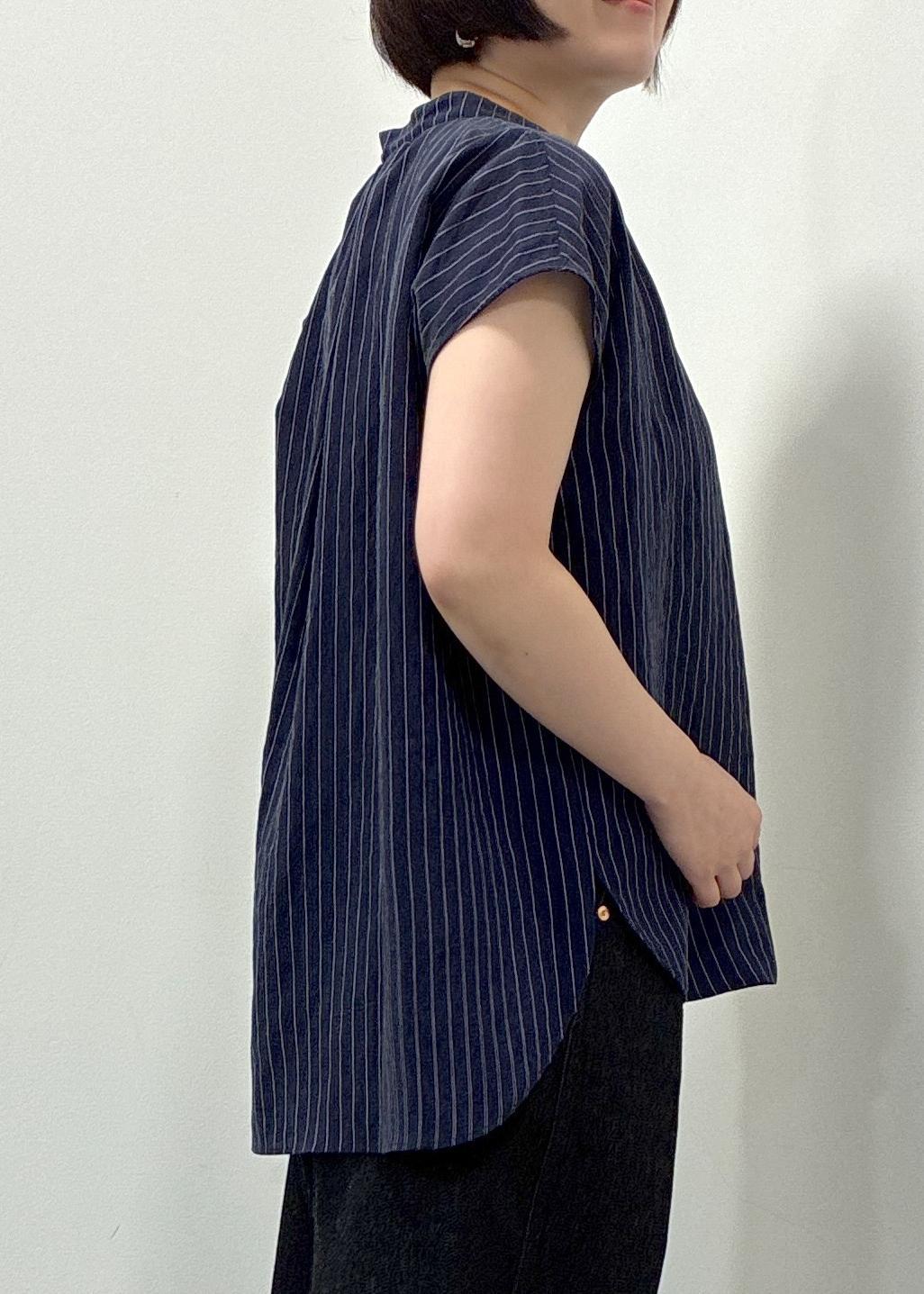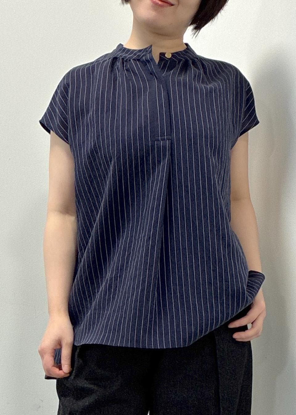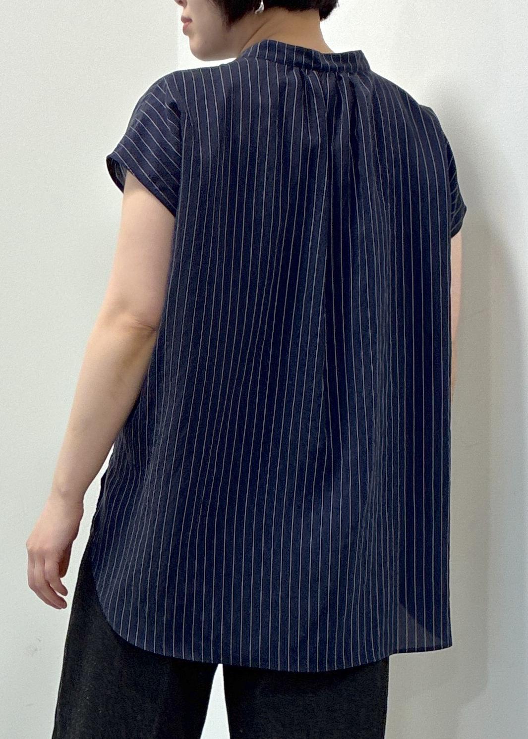 スキッパーデザインのギャザーブラウスで、インでもアウトても合わせやすい一枚で、カジュアルにも綺麗めにもコーディネートを楽しんでいただけるブラウスです。 -