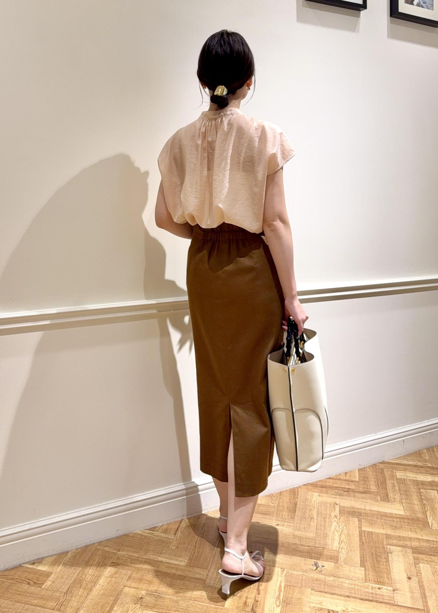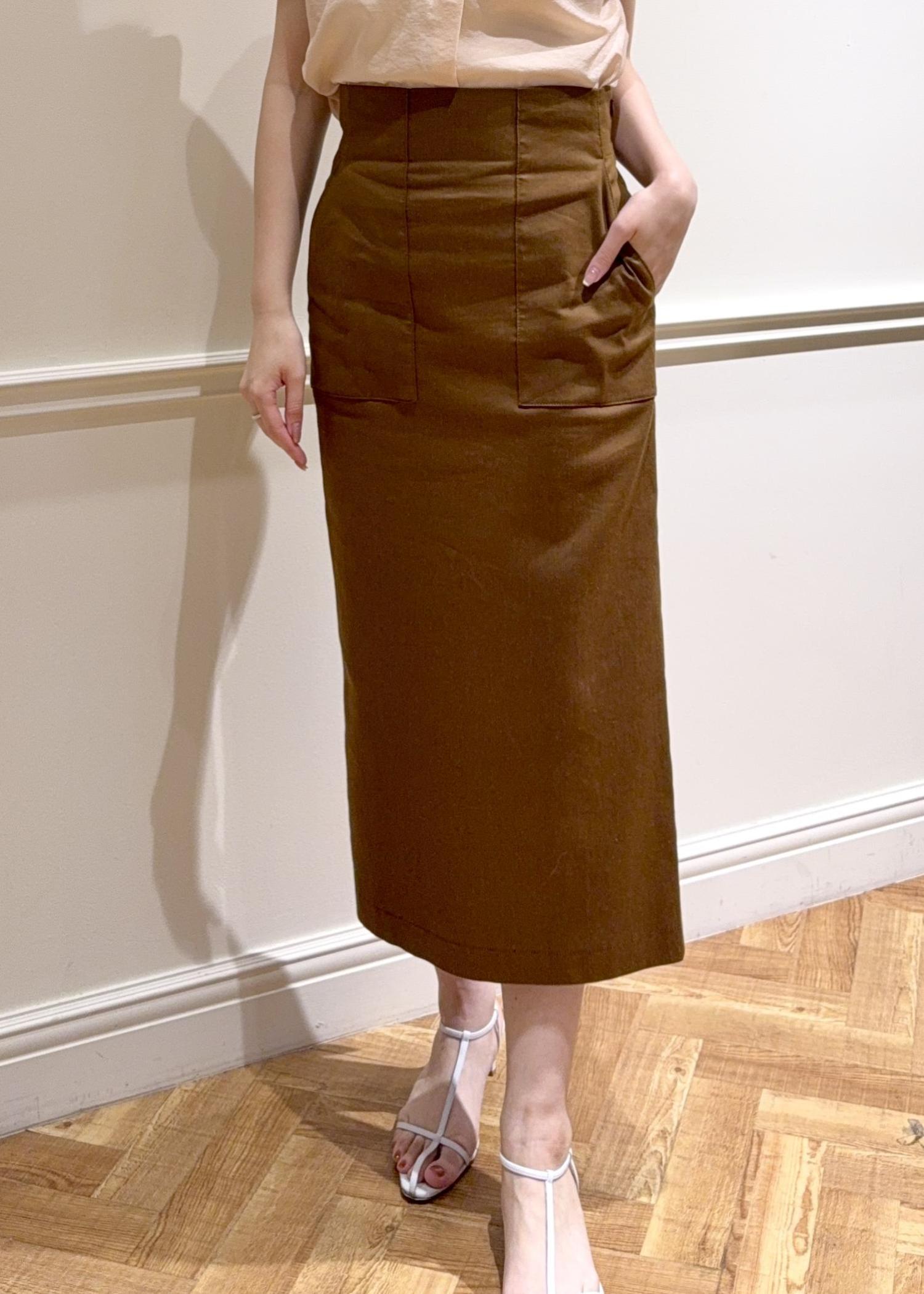 アウトレットROPÉ【洗える】サテンリネン ポケット付きタイトスカート【34サイズ/J'aDoRe・店舗限定】/25SSブラウン / 38¥9,900レビュー身長165cmで38サイズを着用しています。