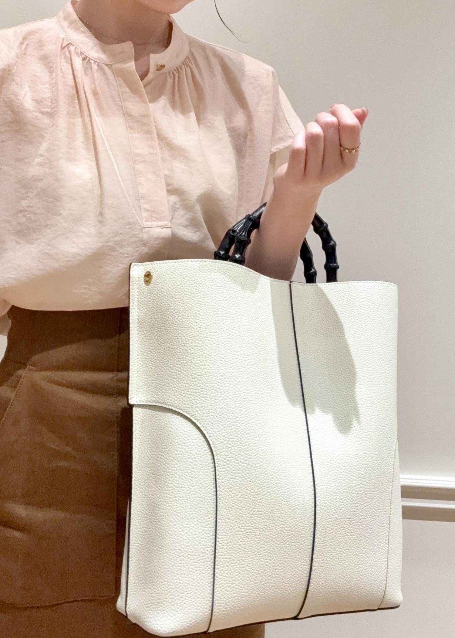 ROPÉ【E'POR】BAMBOO BAG Large【通勤】【A4対応】【25AW】オフホワイト / F¥19,800レビュー付け外し可能なショルダー付きのA4対応のバッグです。