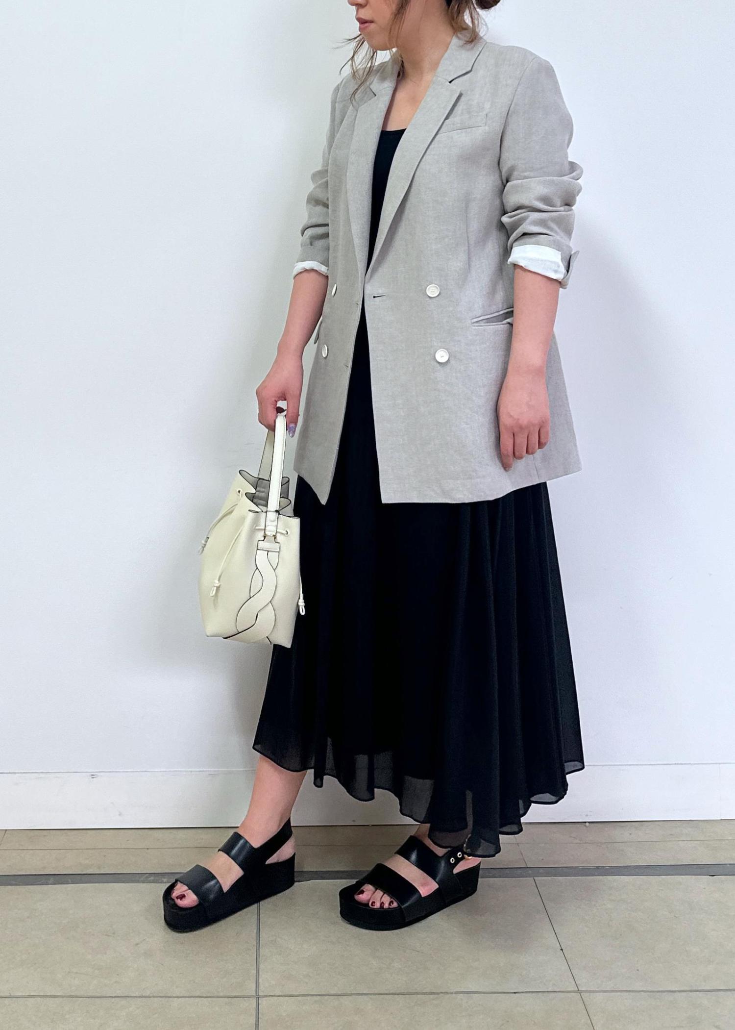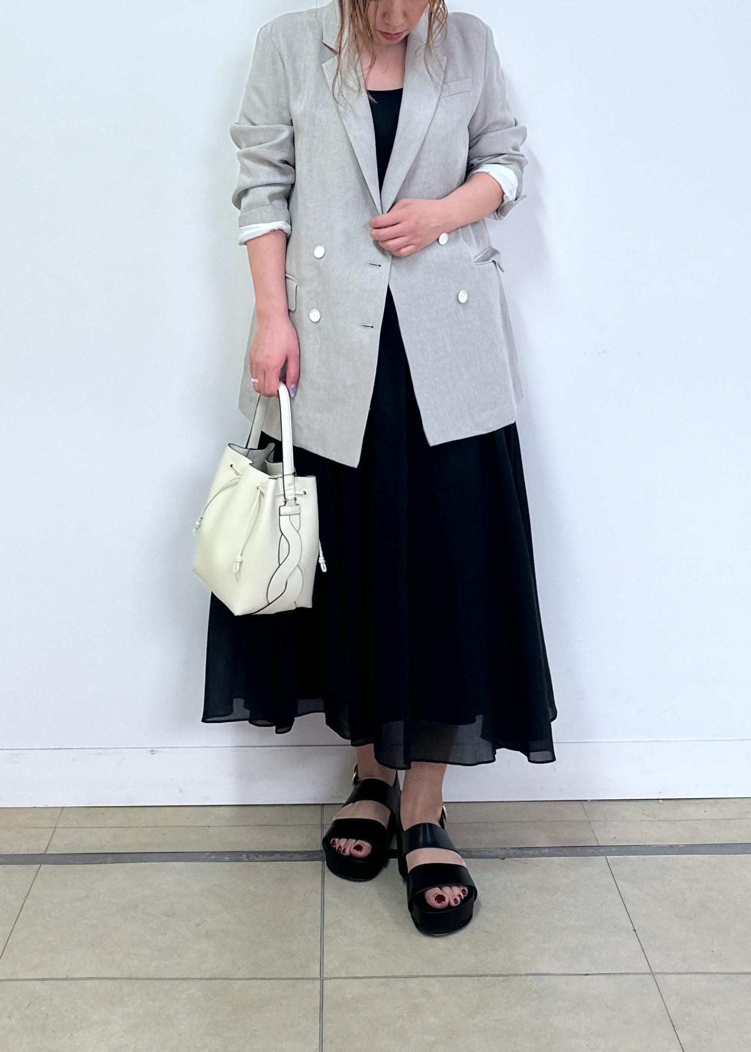 同素材のワンピースも作っているので一緒に合わせてきてもきれいめに着ていただけます。