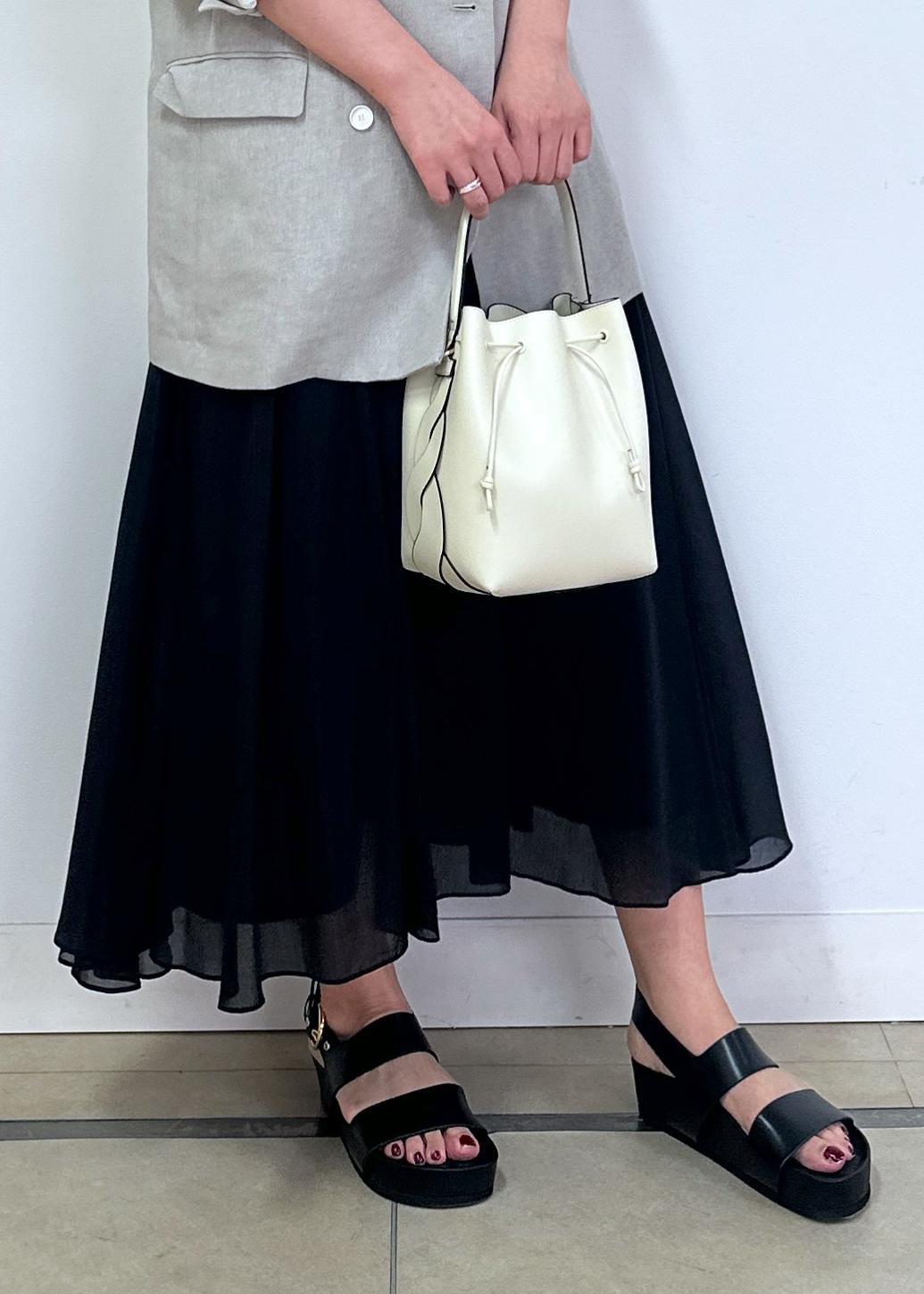 アウトレットROPÉ【洗える】コットンシルクスカートブラック / F¥11,000レビューウエストゴムで楽ちんです♪トップスインもしやすいので、少し長めのトップスもインしてすっきり見えします。肌触りもよく軽いので涼しく着ていただけます。