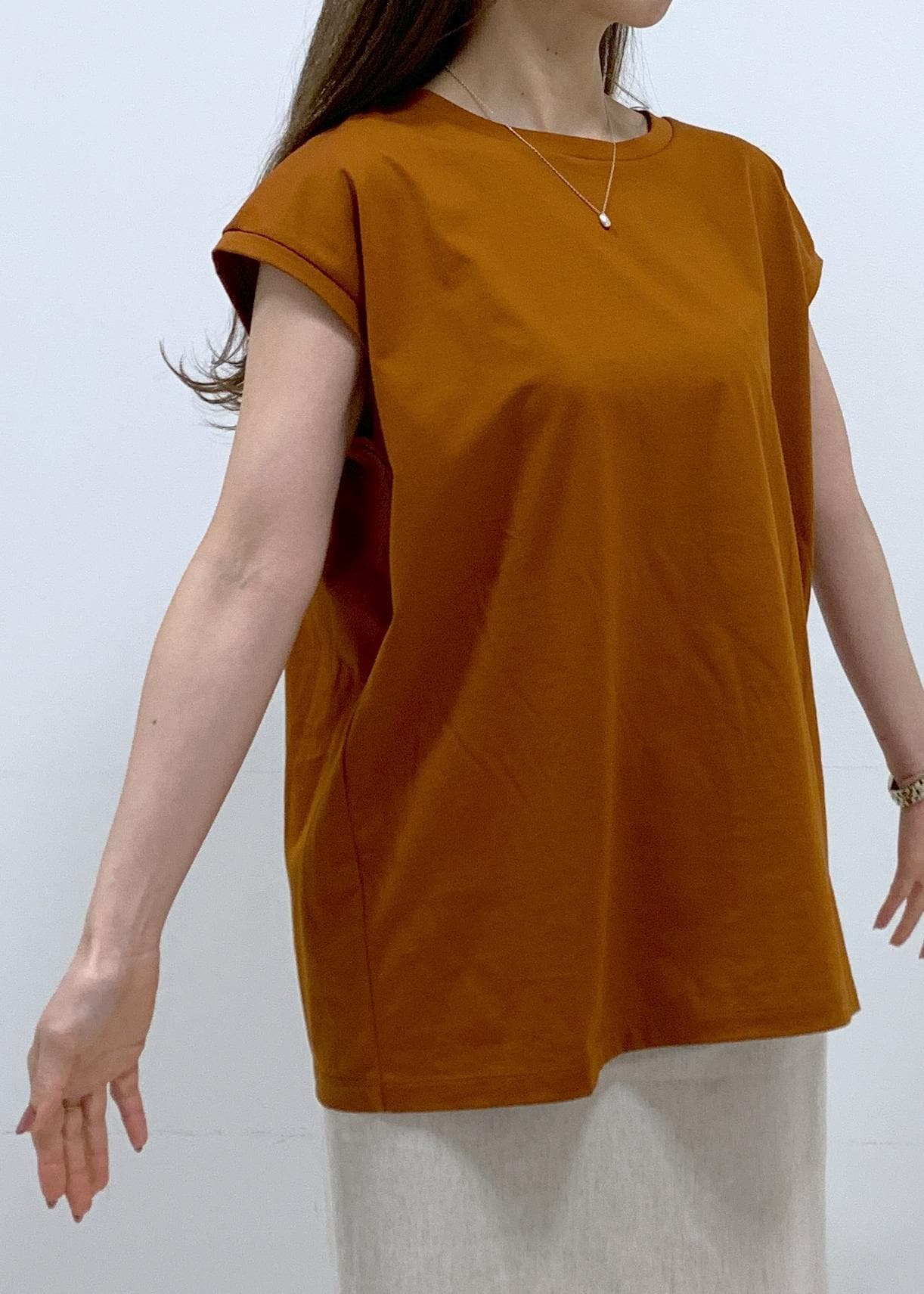 アウトレットROPÉ【接触冷感・洗える・洗濯耐久あり】ノースリーブTEEブラウン / F¥8,470レビューシルクのような光沢と、柔らかく肌触りの良いコットン100%の素材のカットソーです。