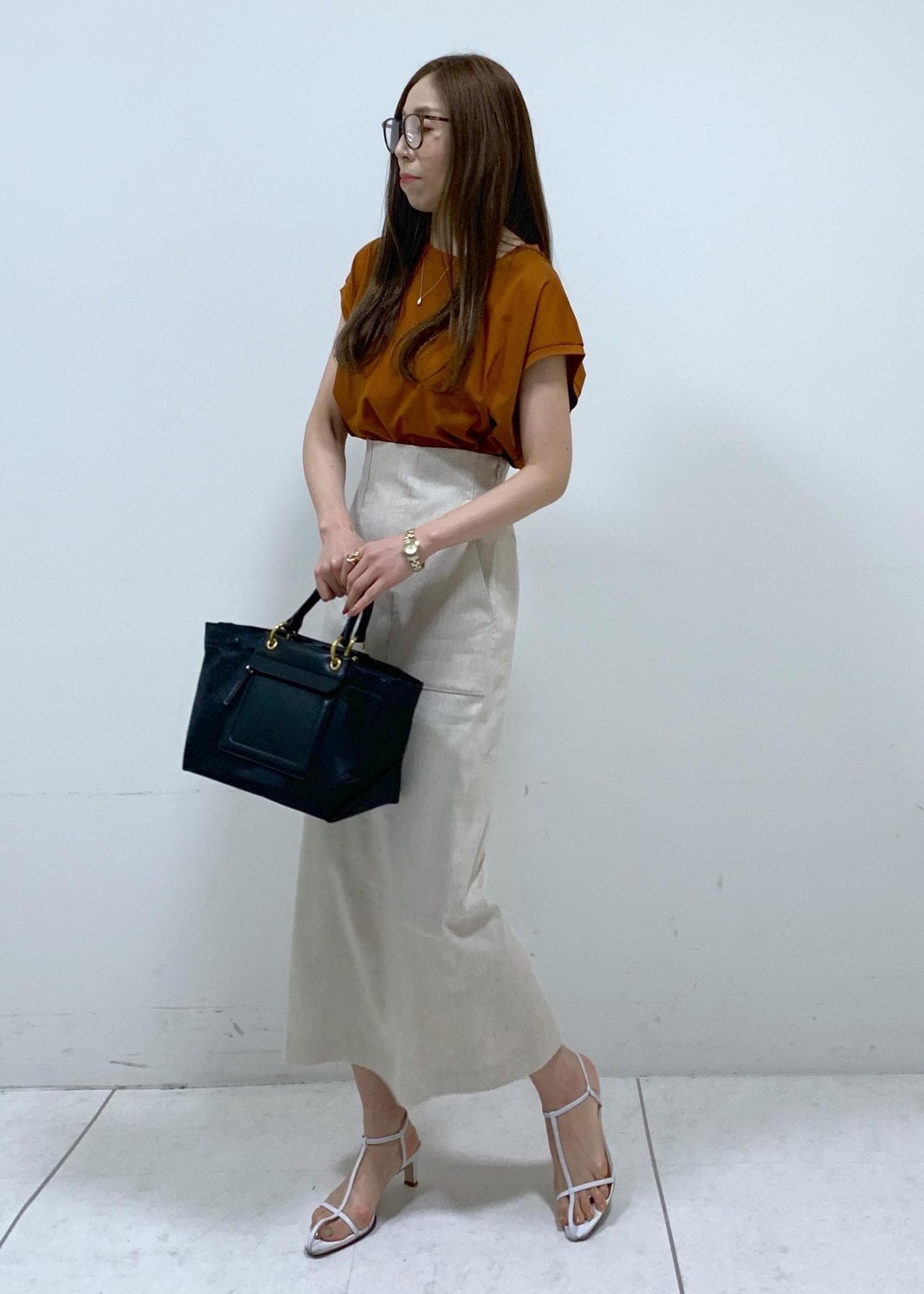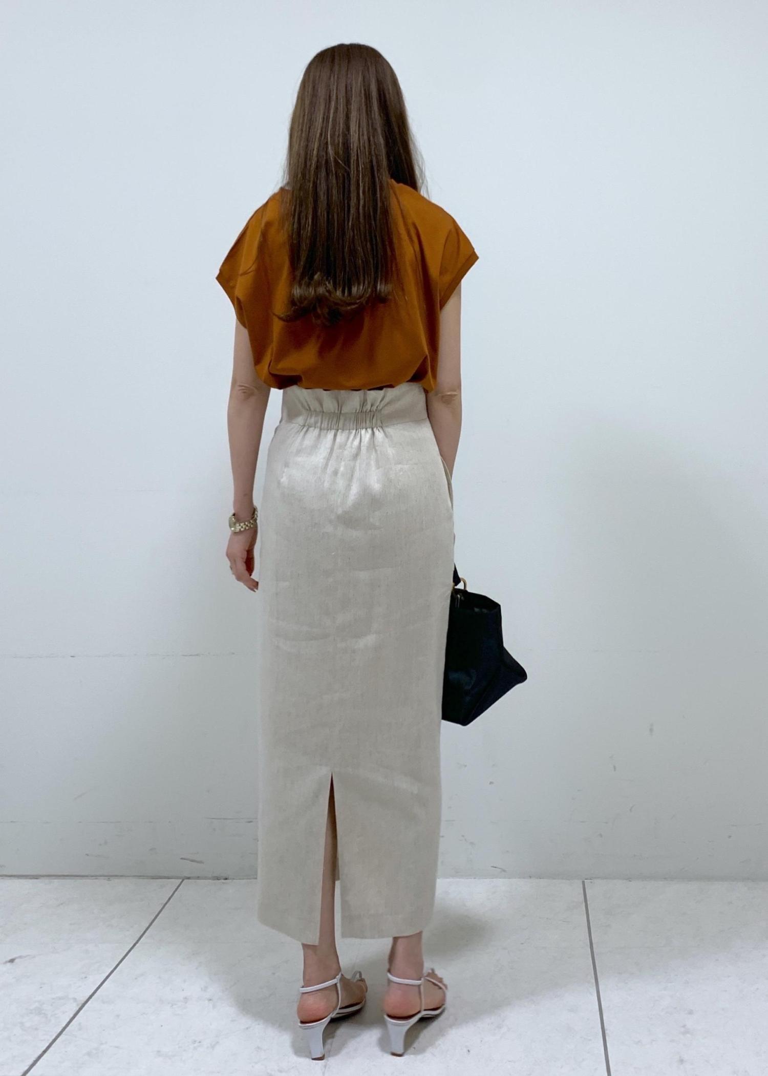 今期はリネンをサテン織りにする事でカジュアルすぎず上品な素材感になってます。