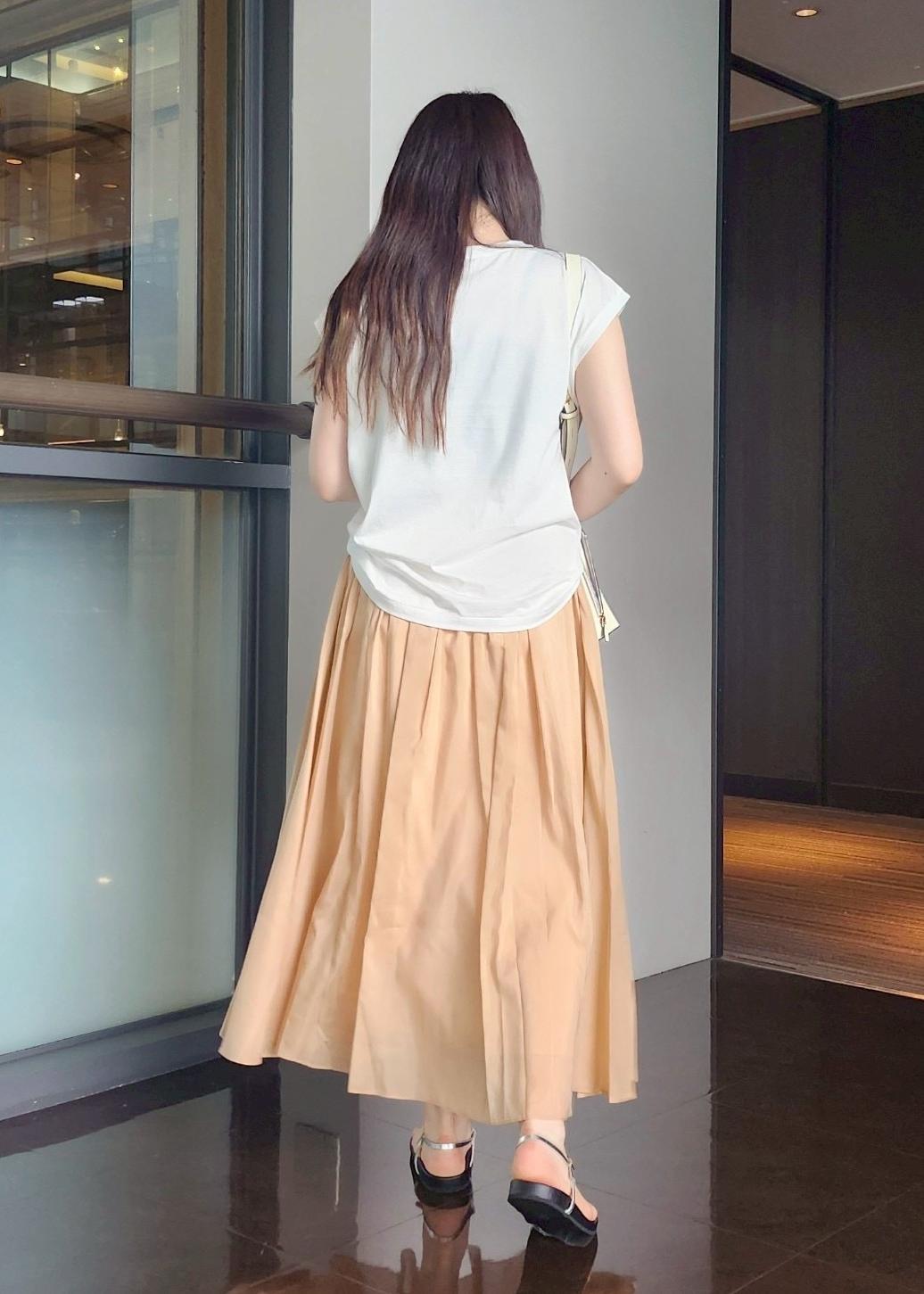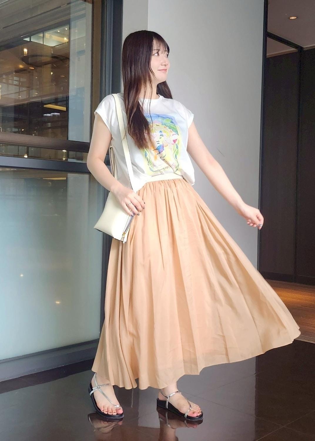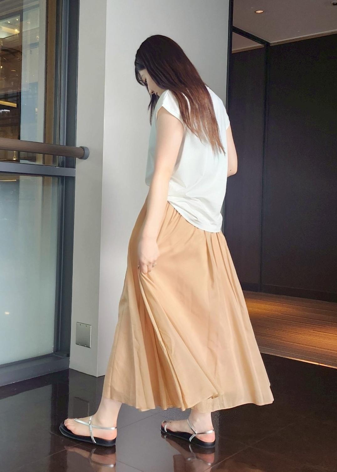 アウトレットROPÉ【洗える】コットンシルクスカートベージュ / F¥11,000レビュー162cmの私でくるぶしが見えて丁度いい丈感でした。