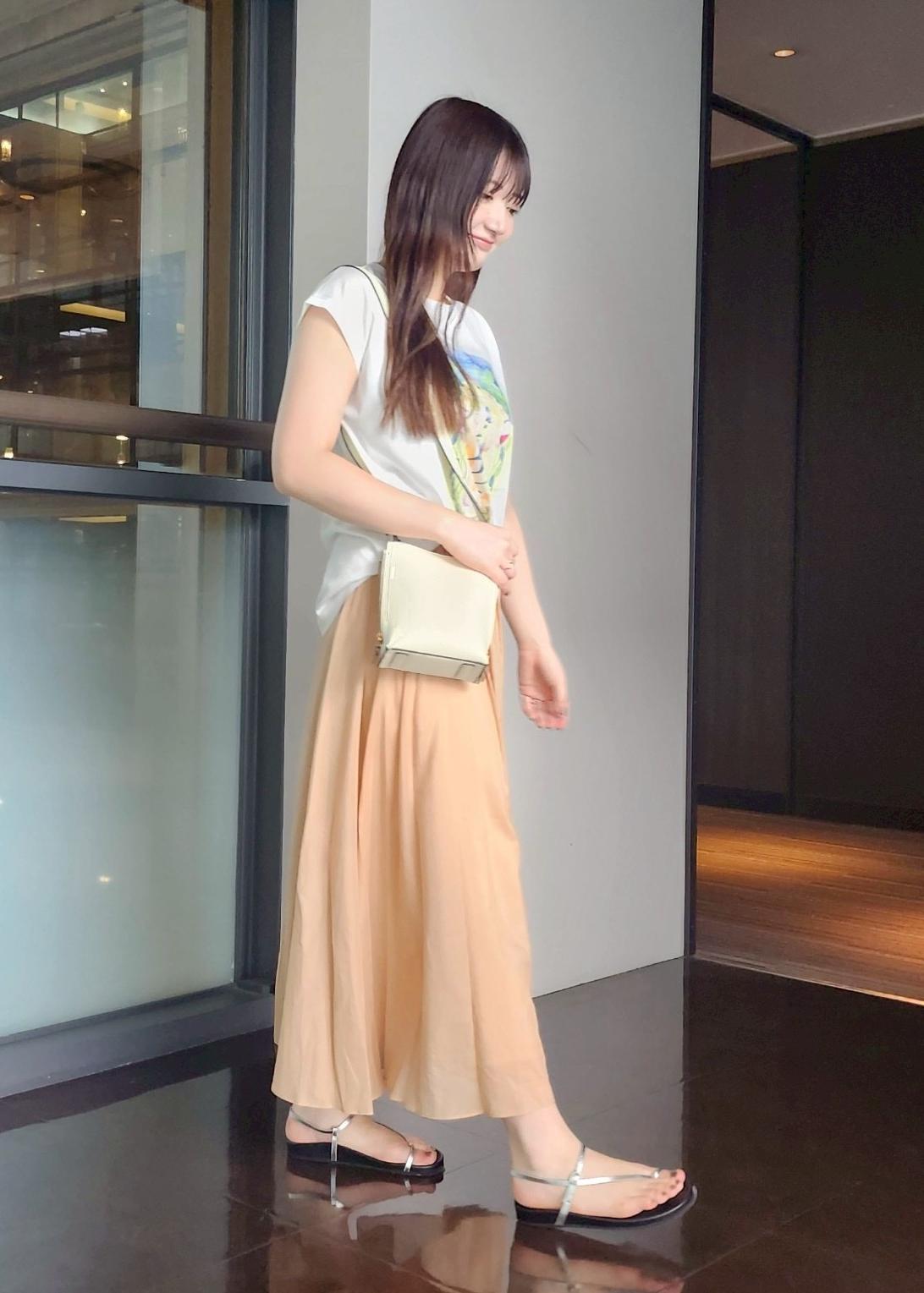 淡いトーンでまとめることで柔らかいフェミニンな雰囲気に。