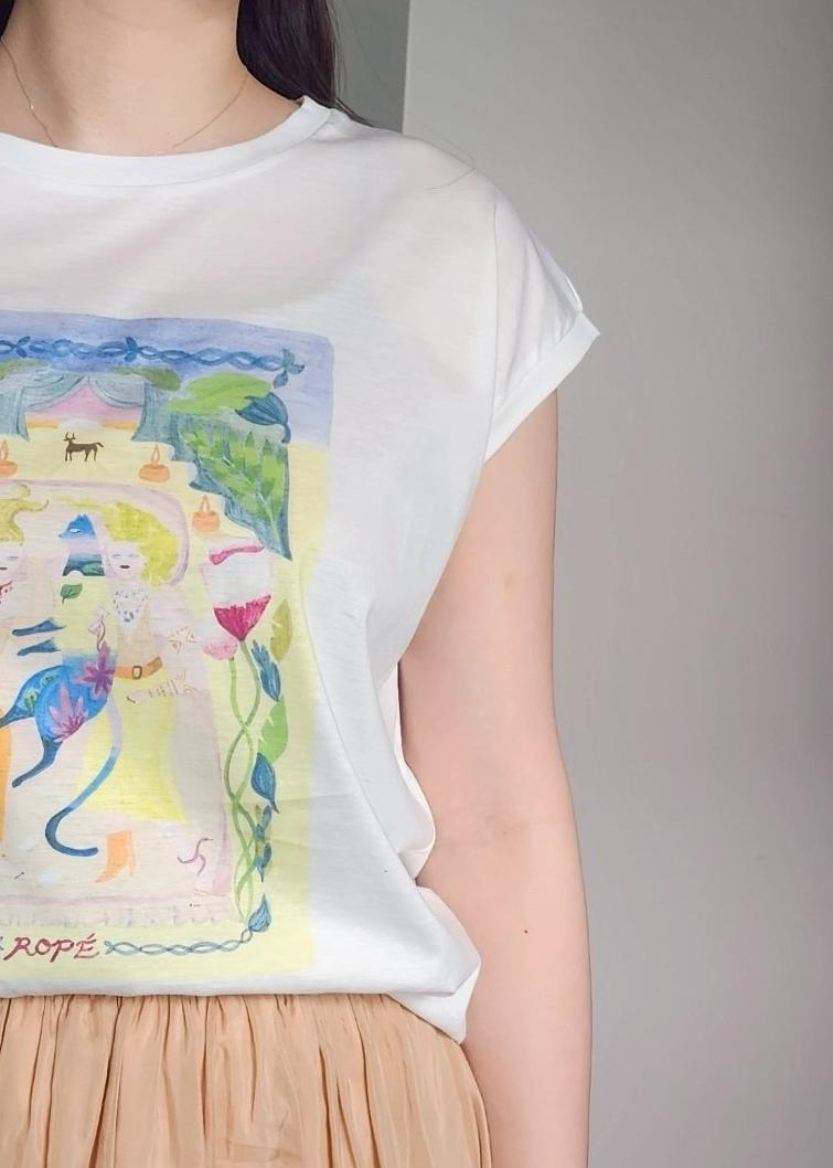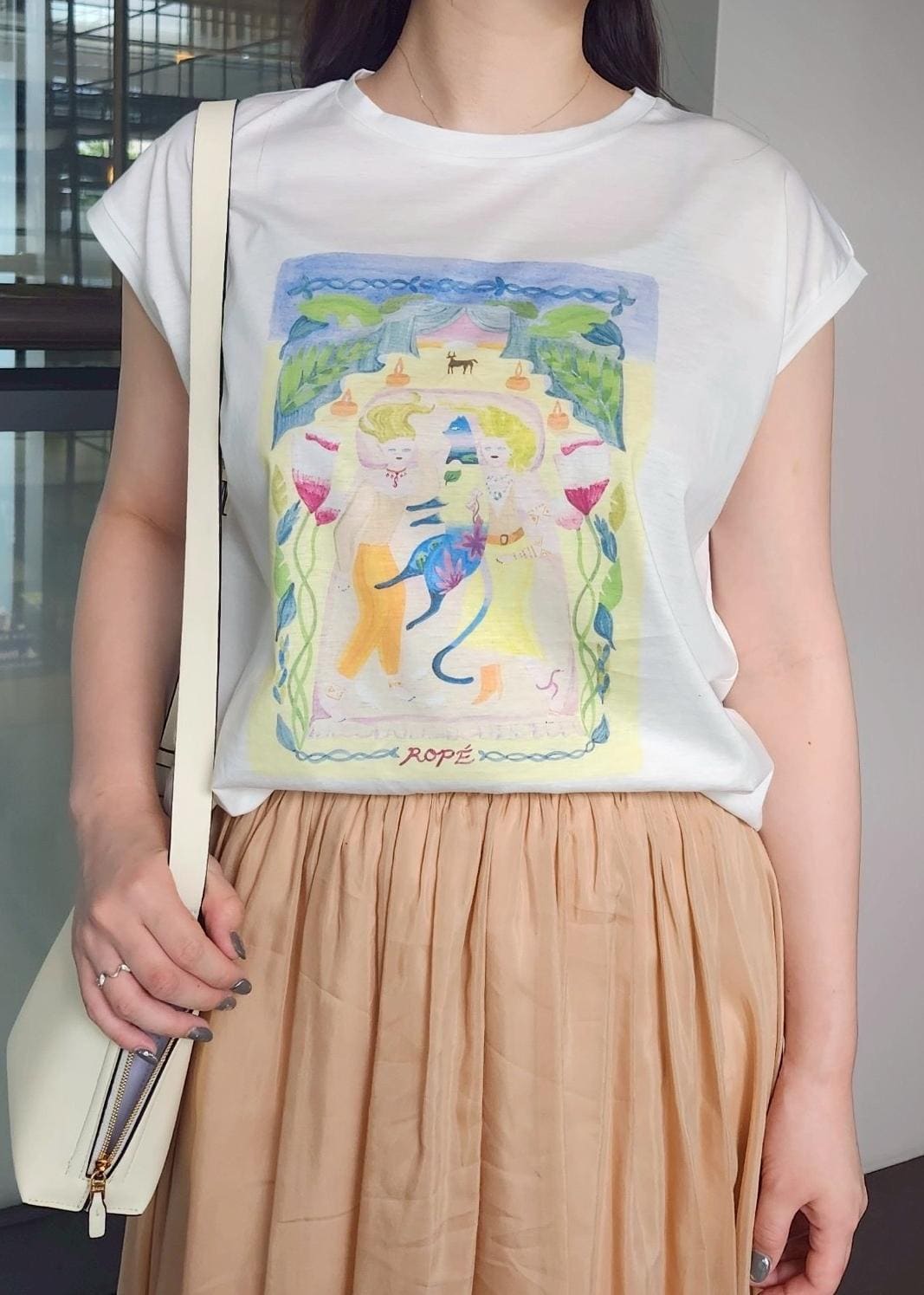 ROPÉ【Kei Nagayama for ROPE'】プリント ノースリーブTEE【接触冷感・洗濯耐久あり】ホワイト / F¥12,100レビューTシャツですがフレンチスリーブなのでカジュアル過ぎず女性らしさも出せます!