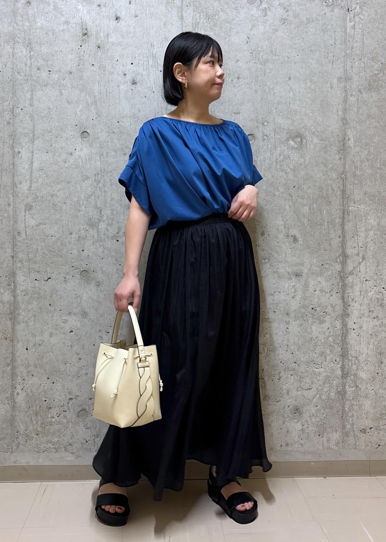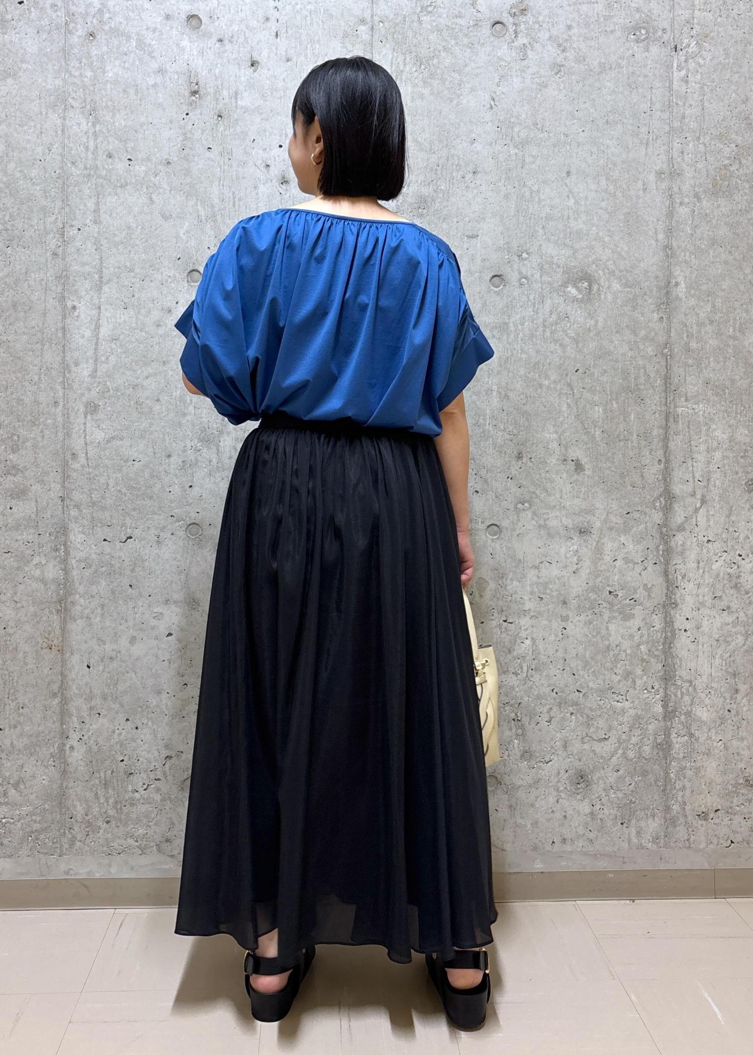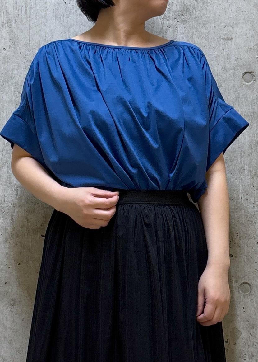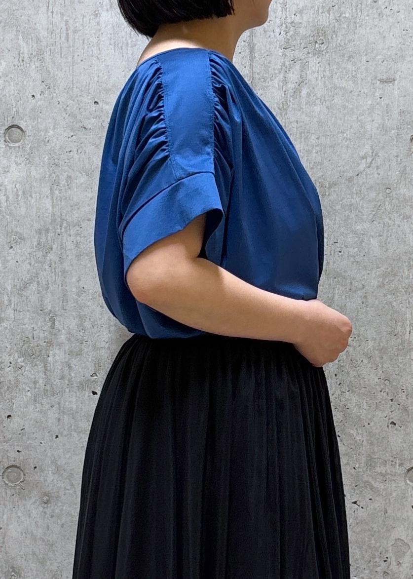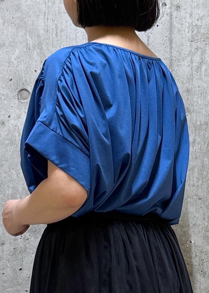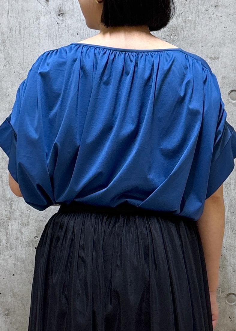 アウトレットROPÉ【洗える】クリア天竺ギャザー半袖プルオーバー/お仕事服ブルー / F¥13,200レビュー152cmでFサイズ着用