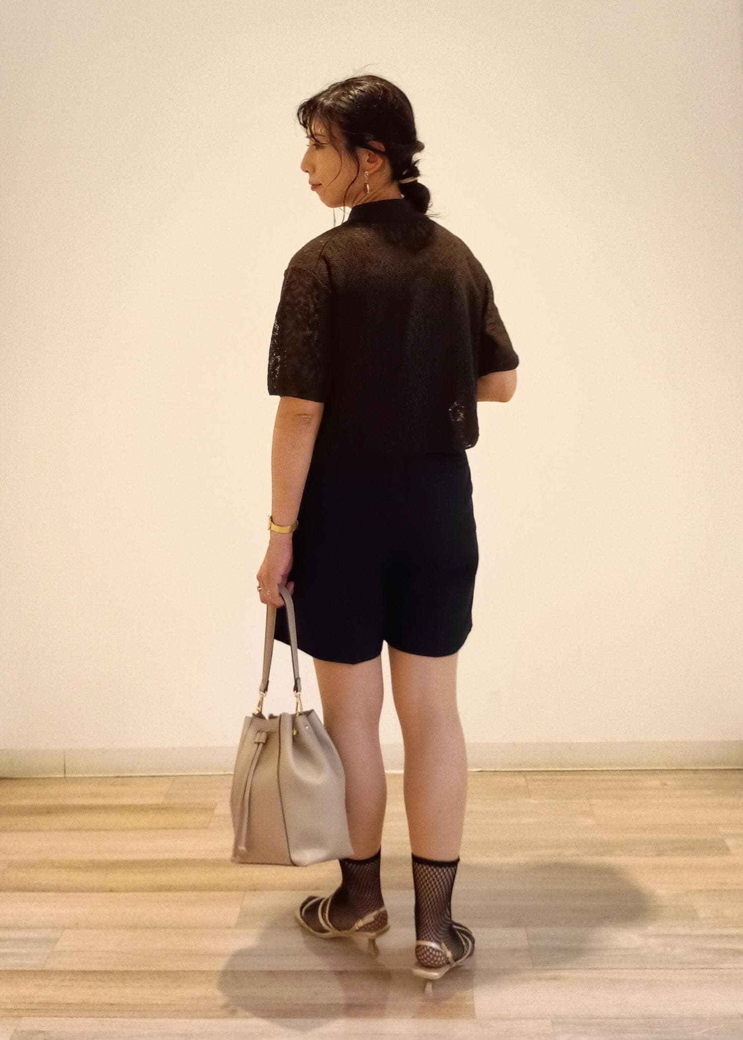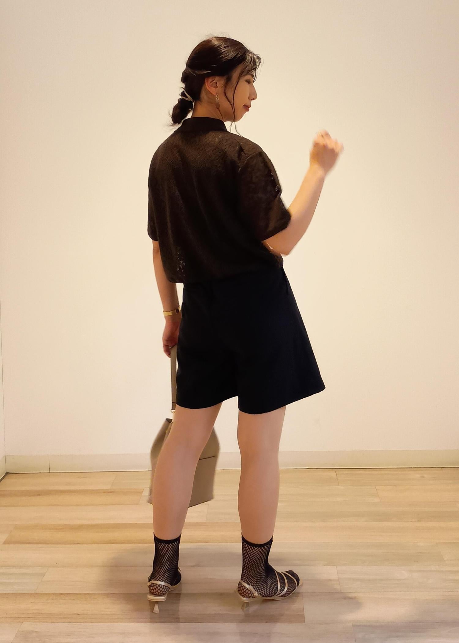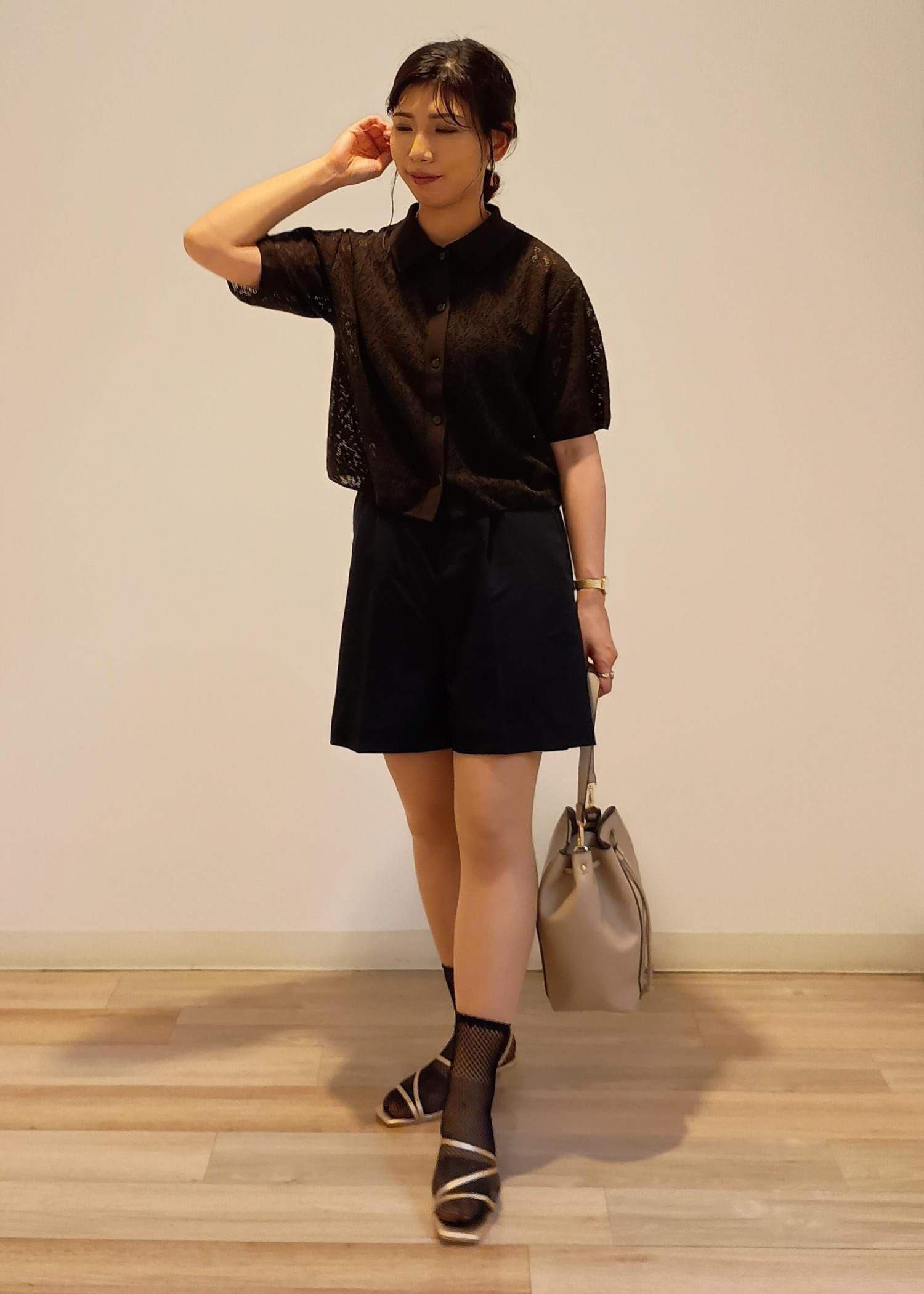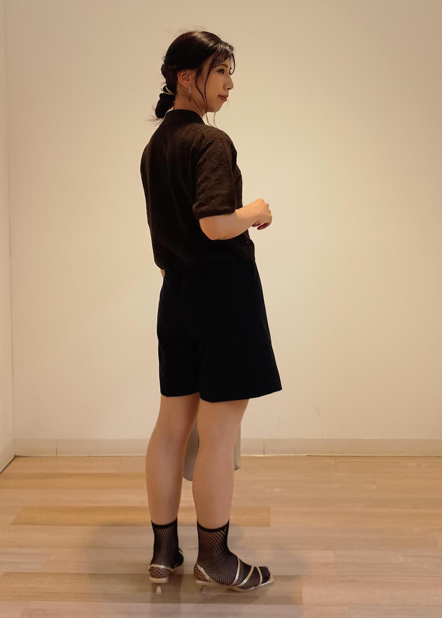ROPÉ PICNICハーフタックパンツブラック / 38¥4,499レビュー裾に向かってやや広がるデザインのハーフパンツ。タックとセンタープレスの立体感が脚を細く見せてくれます。大人でも挑戦しやすい丈感で、暑い夏に風通し良く涼しく着用できます!キレイめからカジュアルまで幅広いコーディネートを楽しめるシンプルなデザインです!