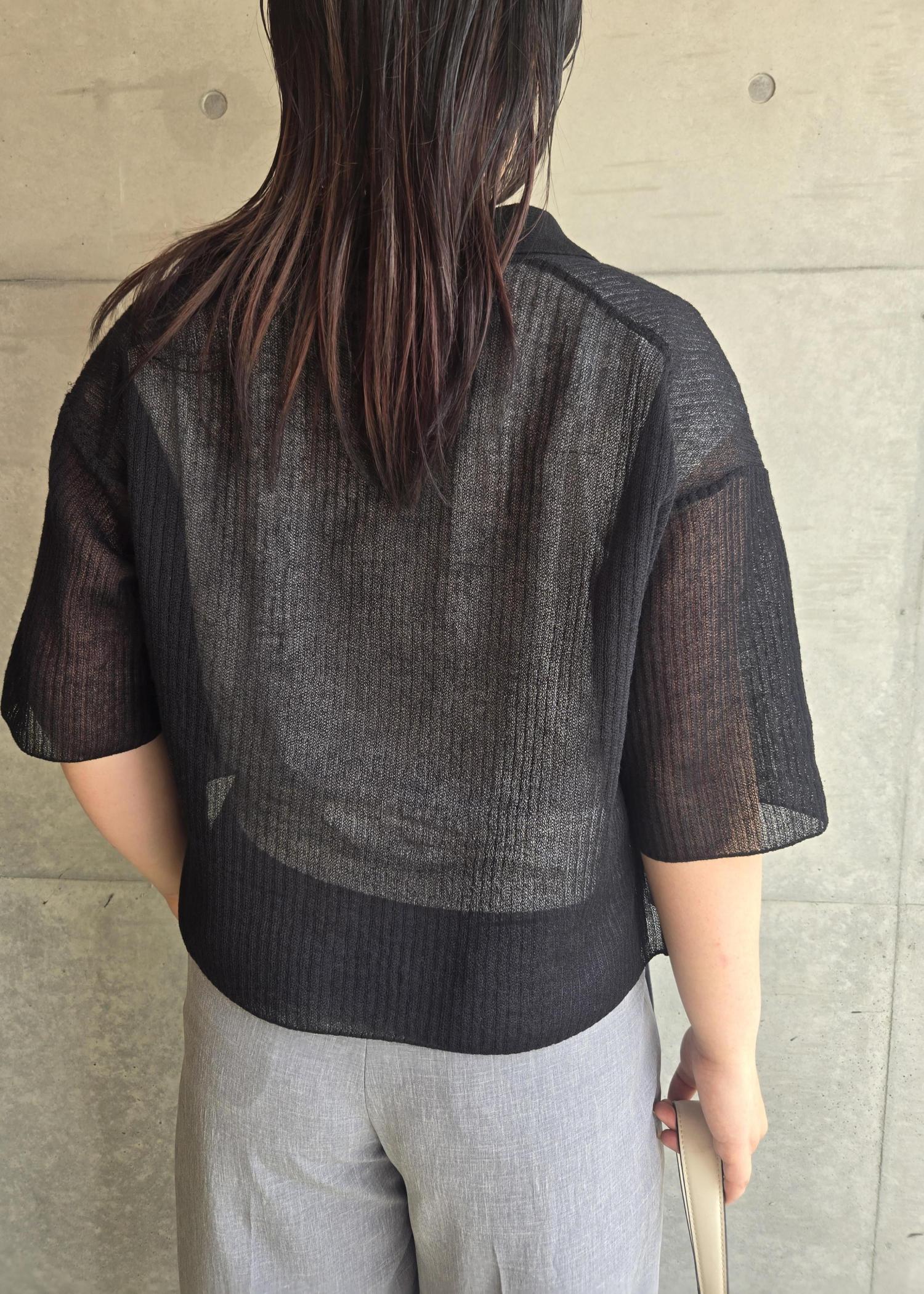 ワンピースの羽織や中にキャミやタンクと合わせて着ることもできます。肌触りがザラザラとした質感で清涼感がある素材です。