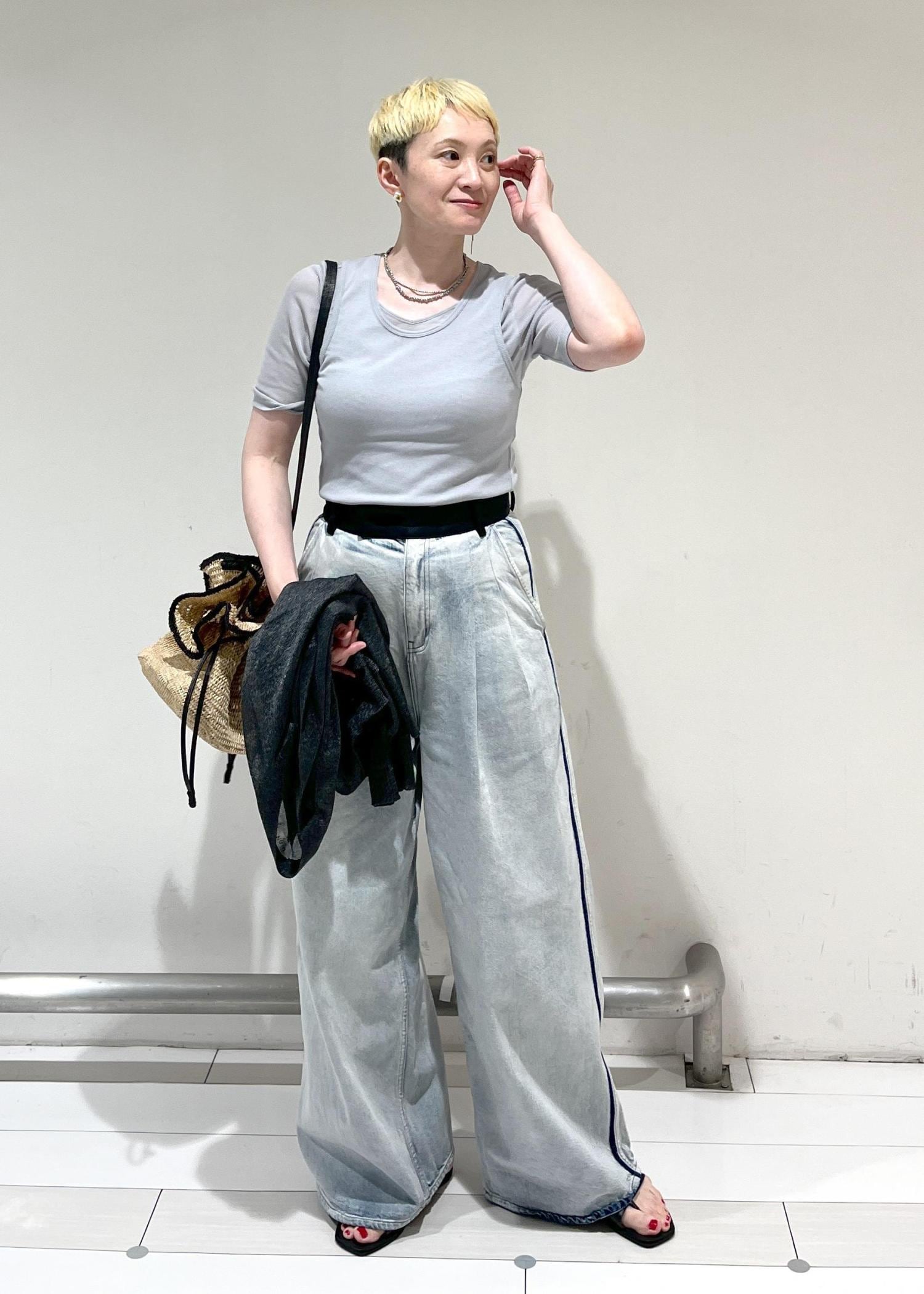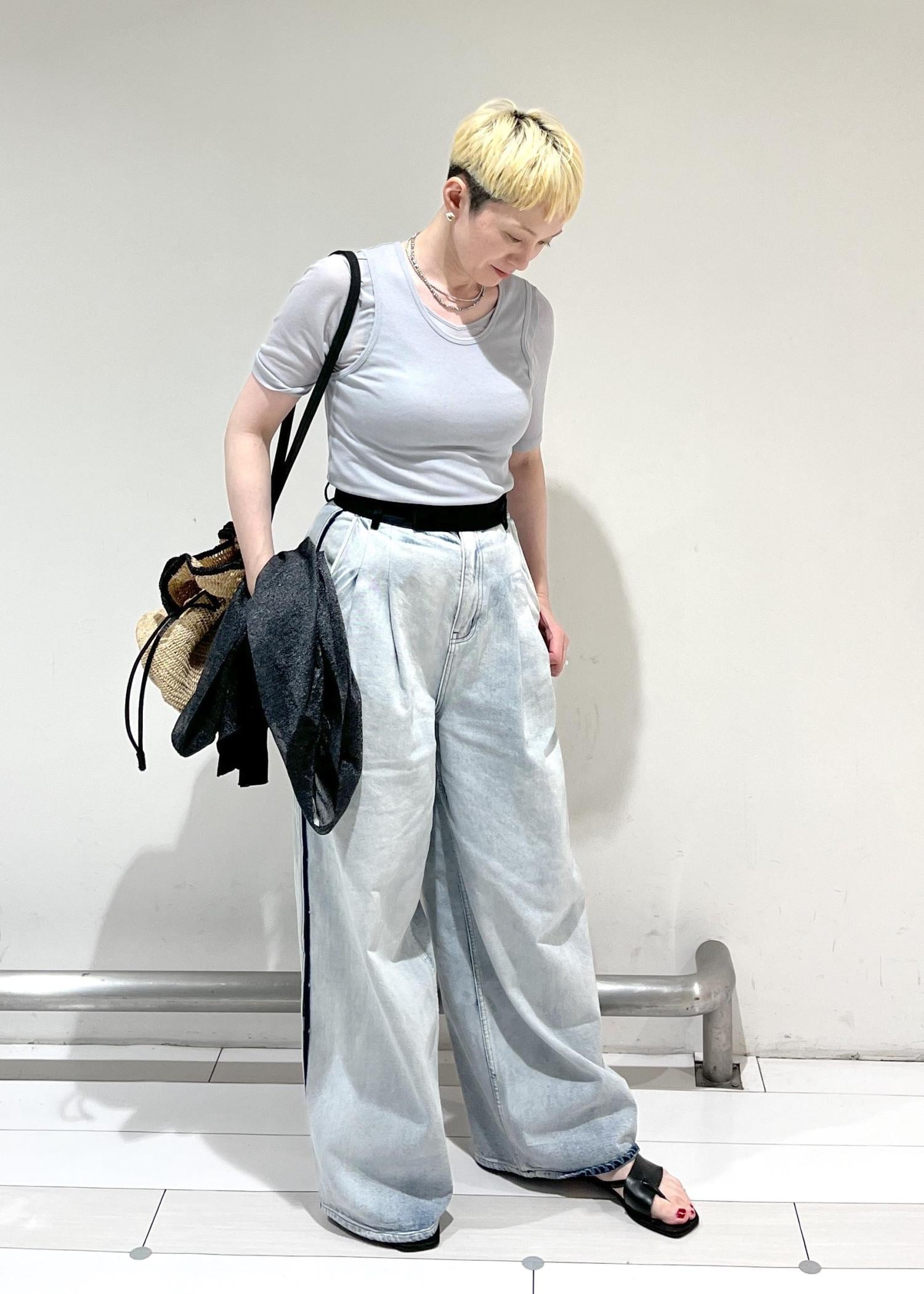 EMOELLE【EMOELLE】・【サステナブル】ドレスデニムパンツサックス / 38¥22,000レビューウエストをインして履きたくなる、サテンベルトがポイントのタックパンツ。
