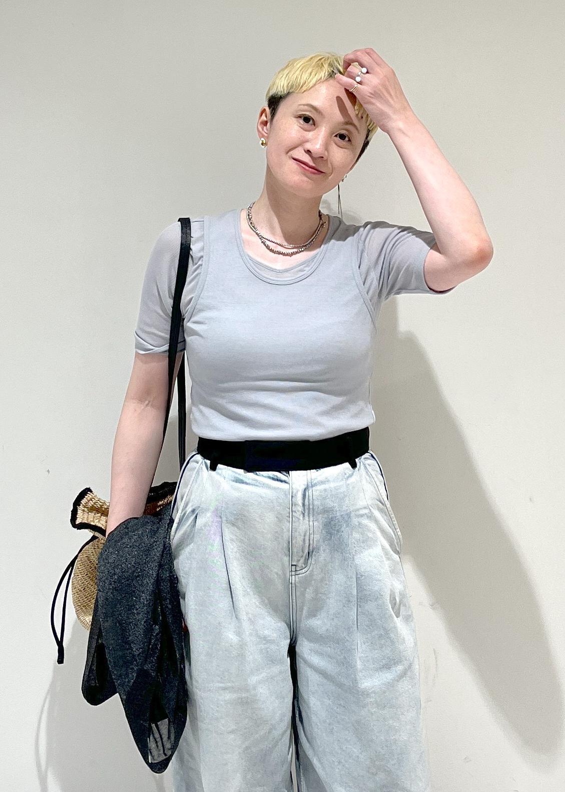 同素材の半袖Tシャツを重ねると、絵の具で色を重ねたようなグラデーションになり素敵です。