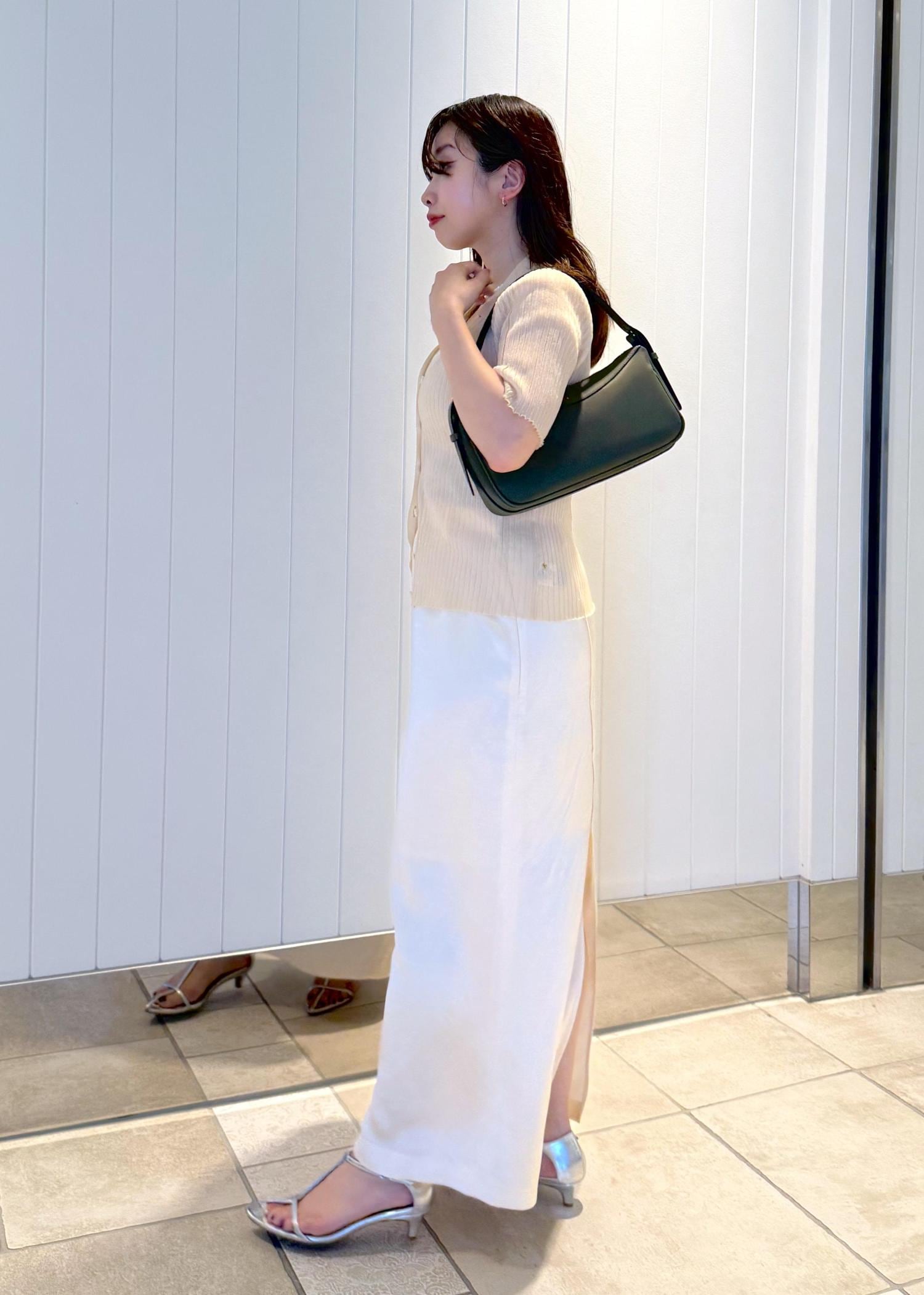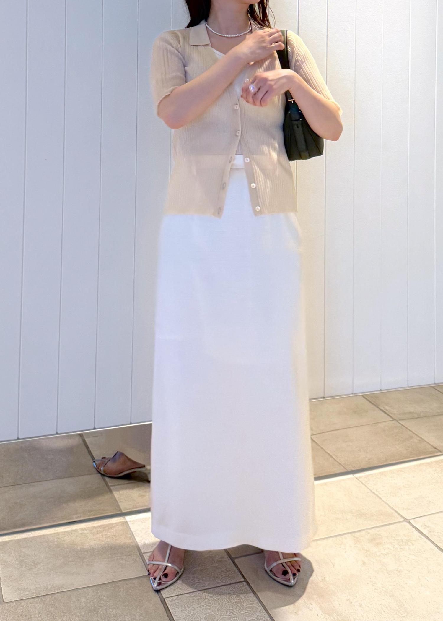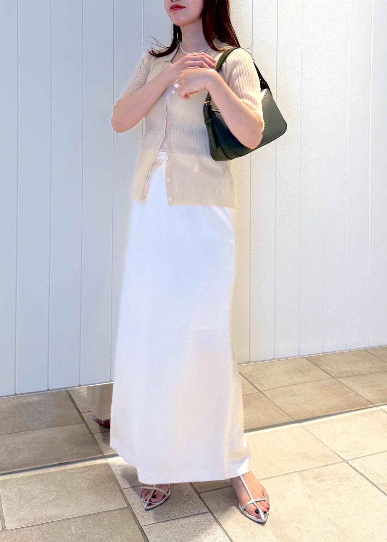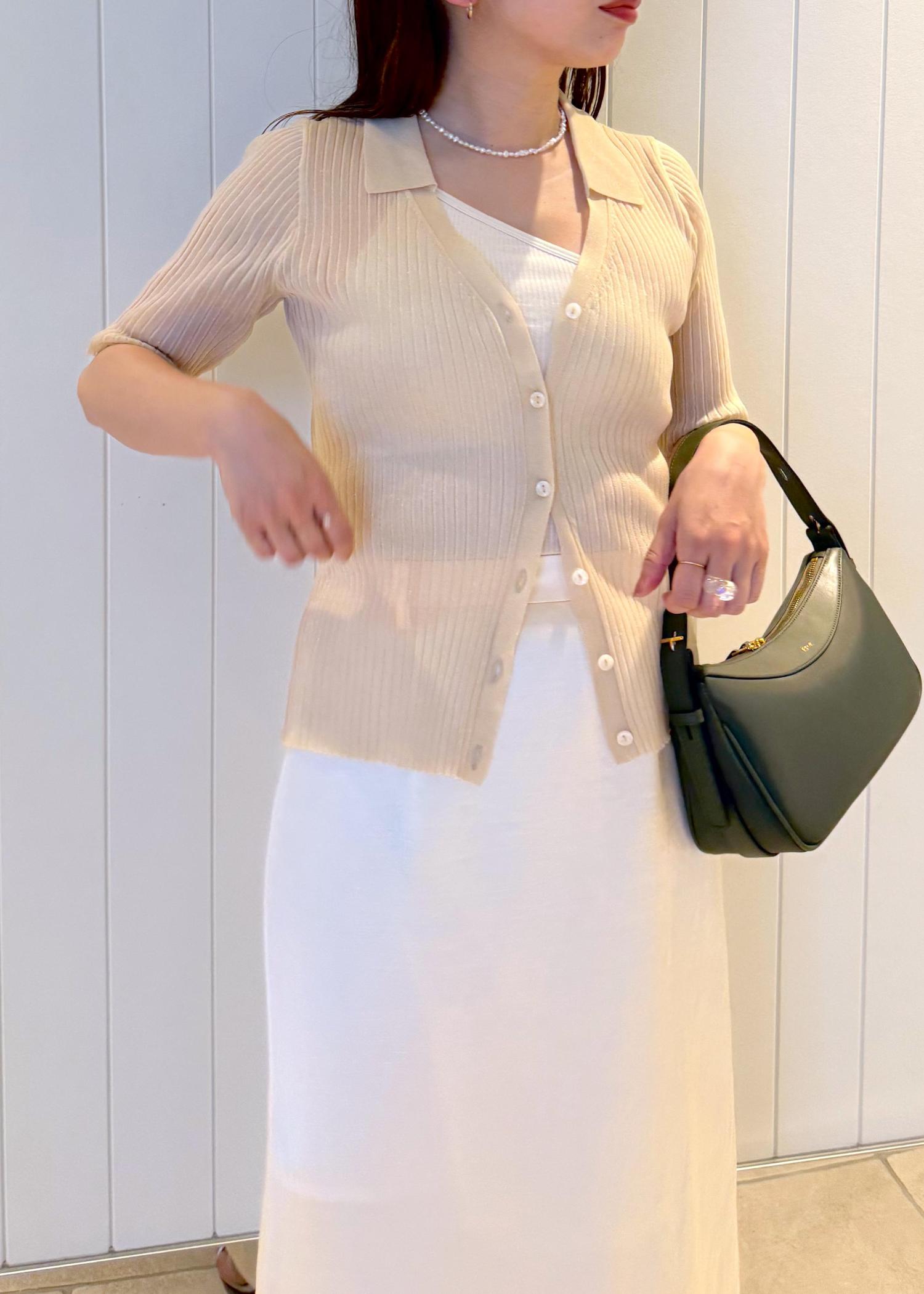素材にハリがあり肌に密着しないので、夏場も涼しく着られそうです!
