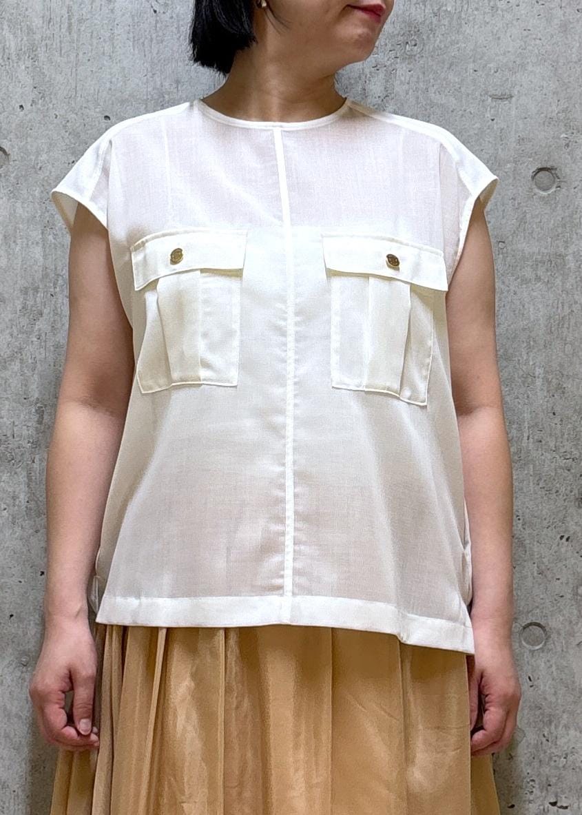 アウトレットROPÉ【洗える】サファリ シアーブラウスオフホワイト / F¥12,650レビュー152cmでFサイズ着用