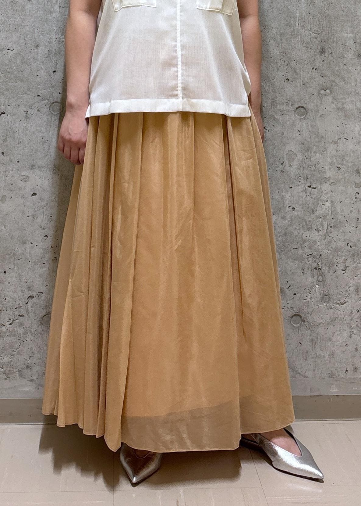 アウトレットROPÉ【洗える】コットンシルクスカートベージュ / F¥11,000レビュー152cmでFサイズ着用