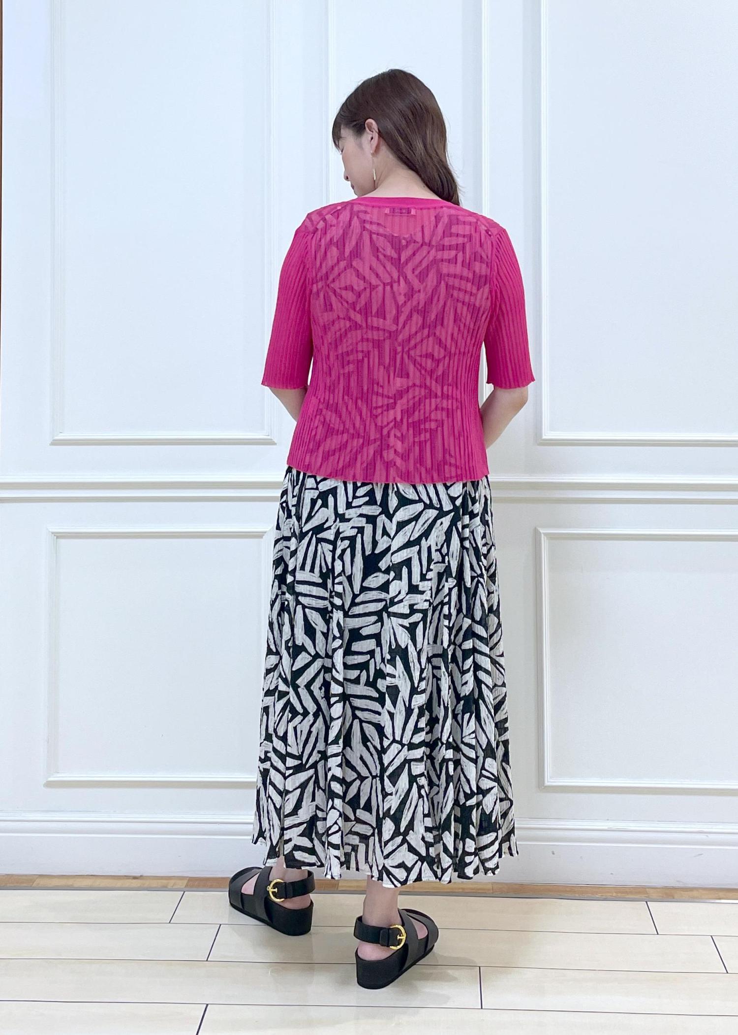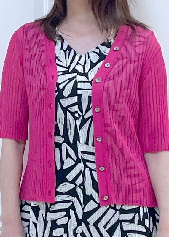気分が上がる鮮やかなピンクカラーのシアーカーディガンに