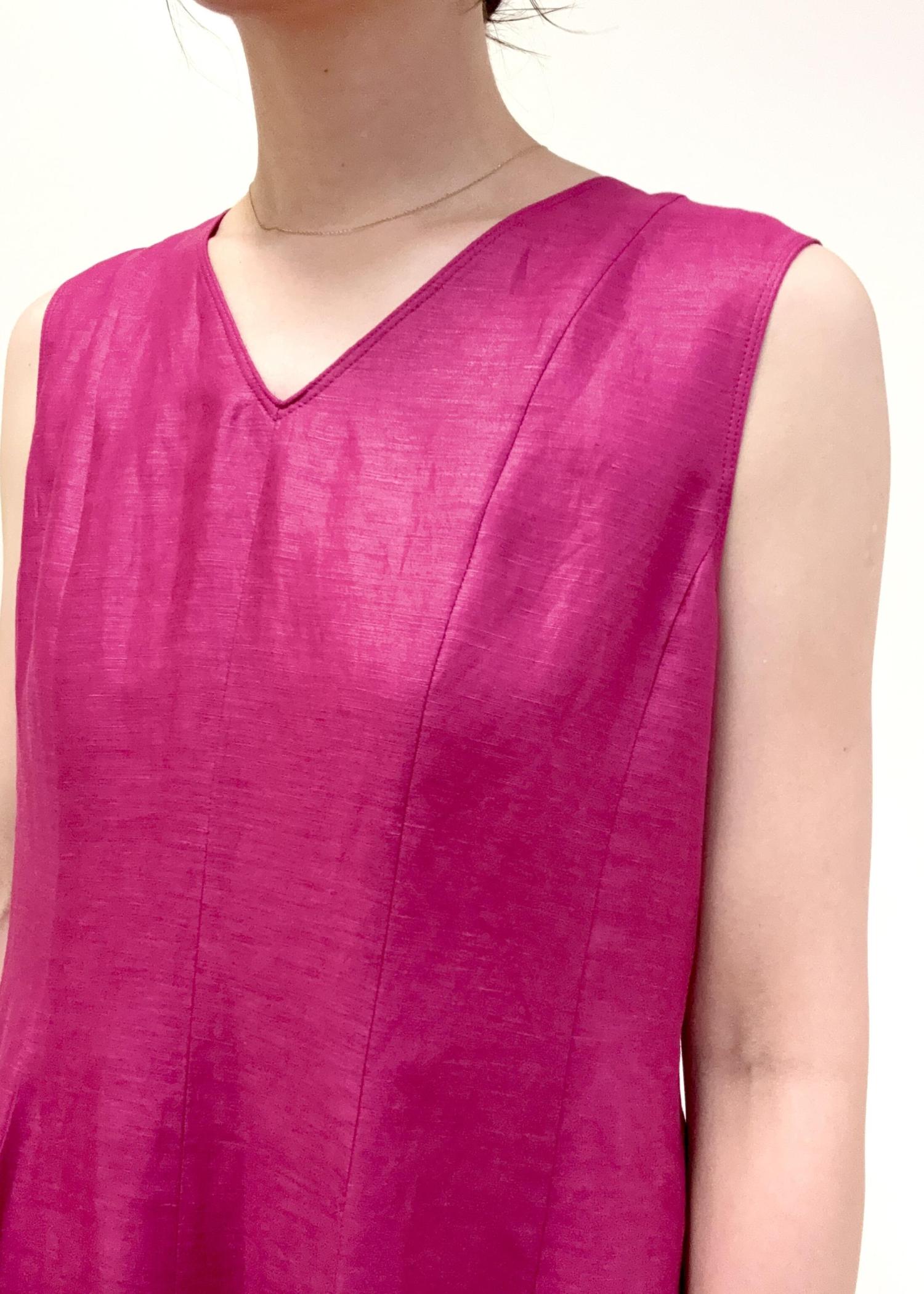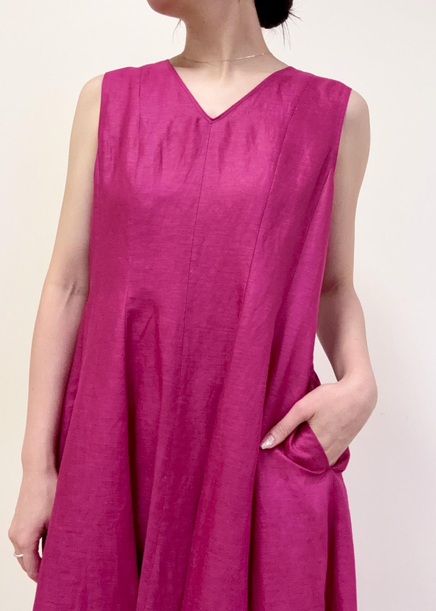 アウトレットROPÉ【洗える】ブライトリネン パッチワンピースピンク / F¥26,400レビュー身長165cmでFサイズを着用しています。