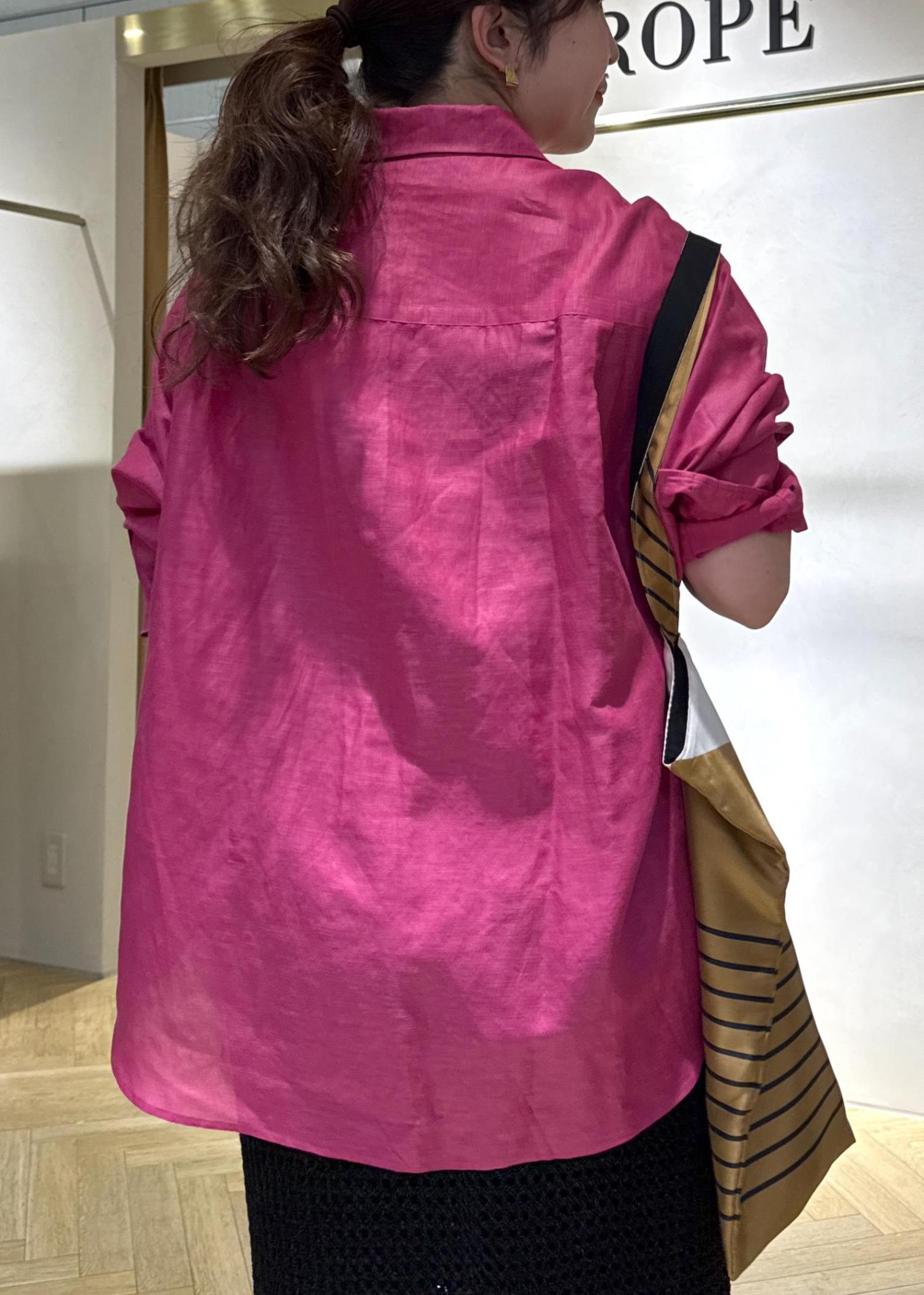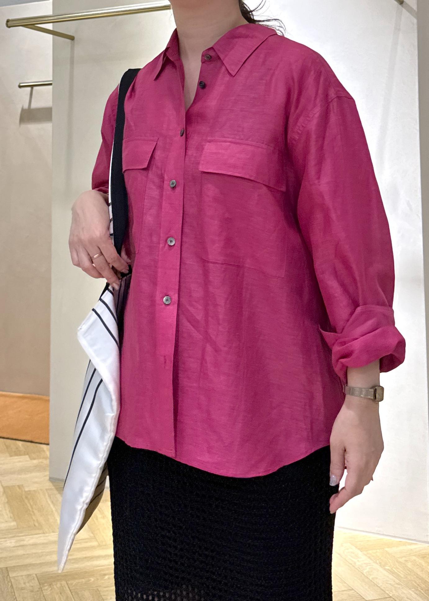 アウトレットROPÉブライトリネン フラップシャツブラウス/洗えるピンク / F¥16,500レビューGGH25160(ヨーロピアンリネンベーシックシャツ)は麻100%でナチュラルな風合いでしたがこちらは麻とポリエステルの混合素材なので光沢感がありツルッとしたざらつきの無い素材感です。肌触り良いです。