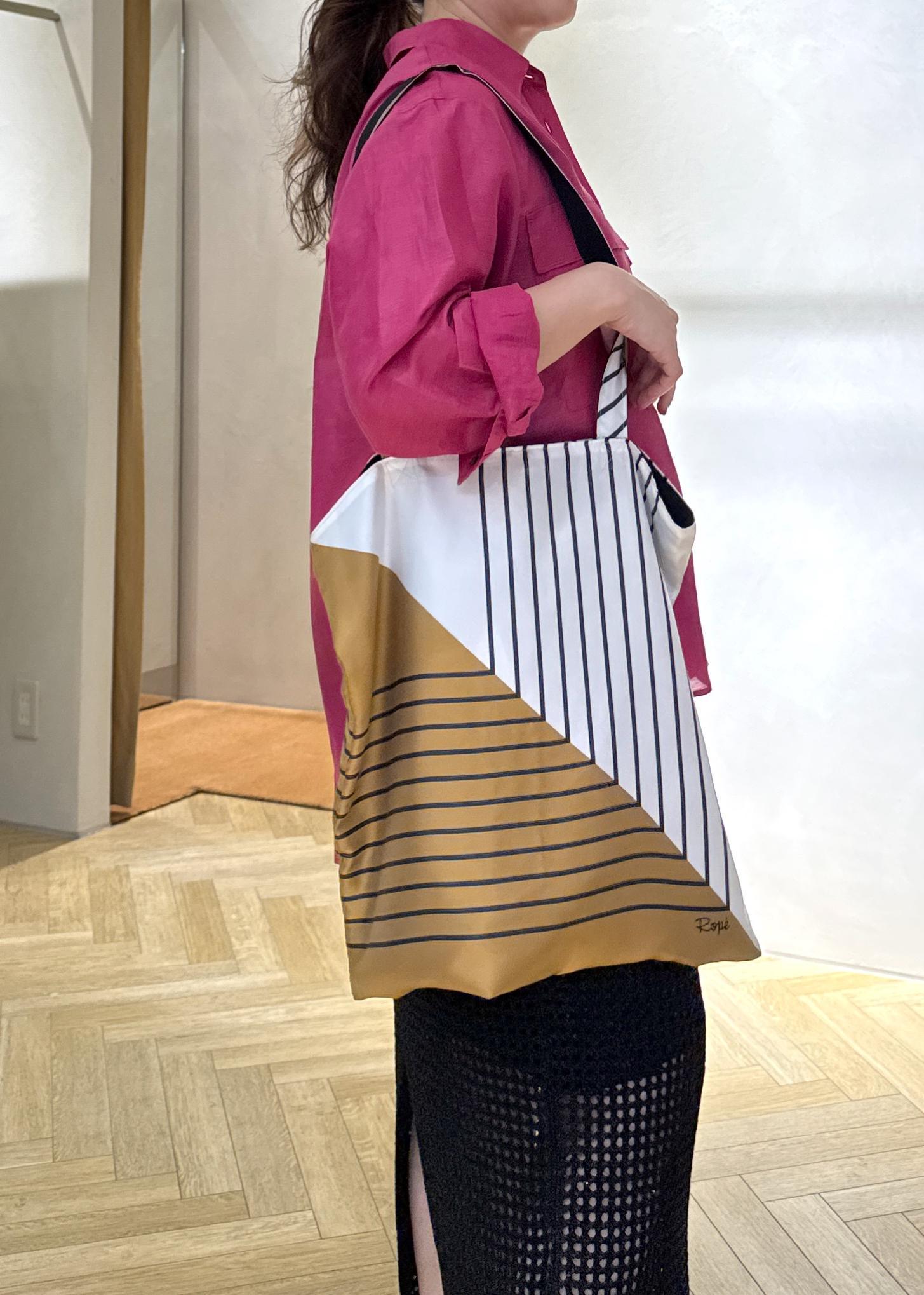 アウトレットROPÉ幾何学柄シルクトートバッグオフホワイト / F¥7,040レビュー表地がシルク100%なのでカジュアル見えしすぎずキレイめコーデの抜け感、アクセントにオススメ。
