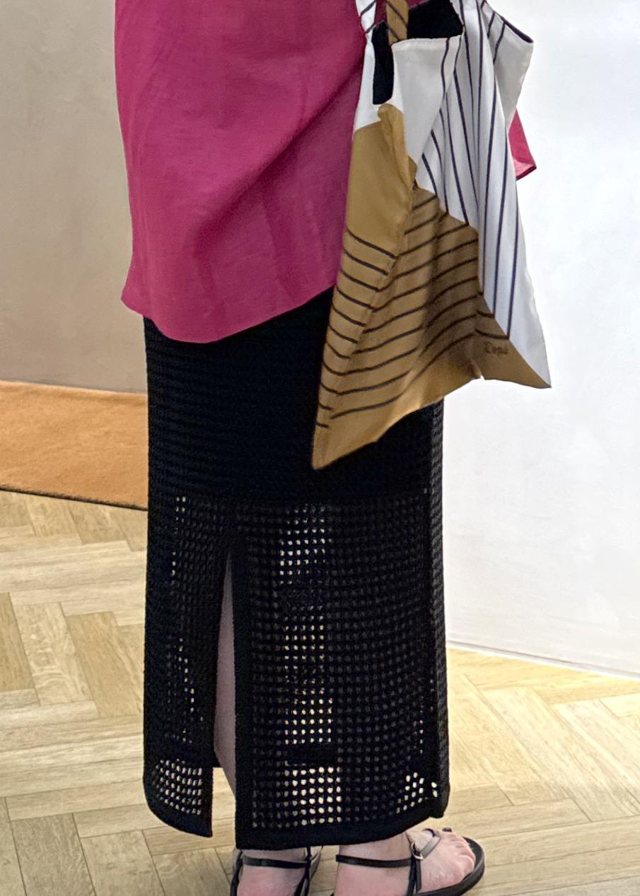 アウトレットROPÉラメメッシュスカート/セットアップ対応ブラック / 38¥13,200レビュー38サイズを着用。