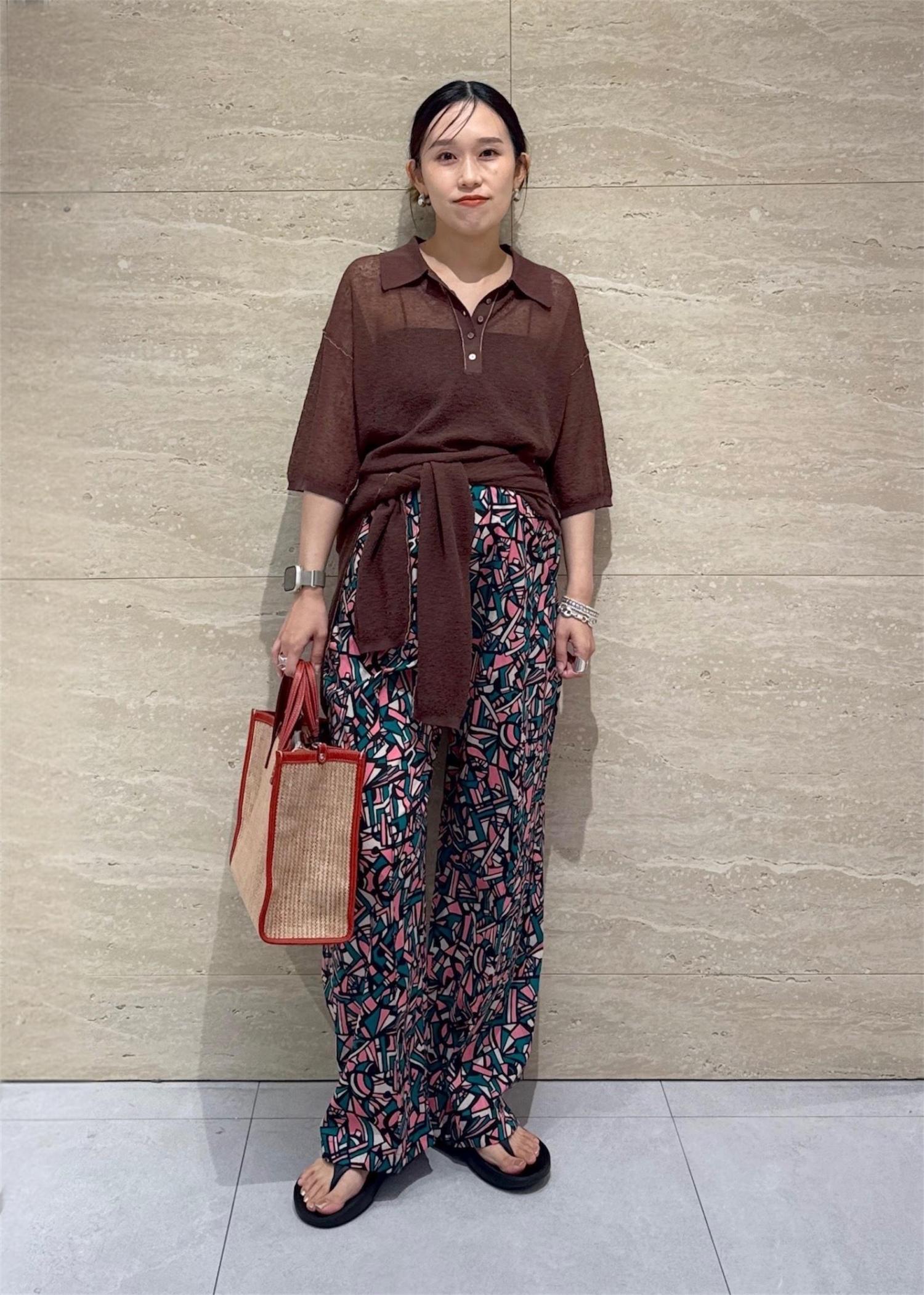 華やかなリバティパンツをシアー感のあるトップスで、女性らしさをプラス。
