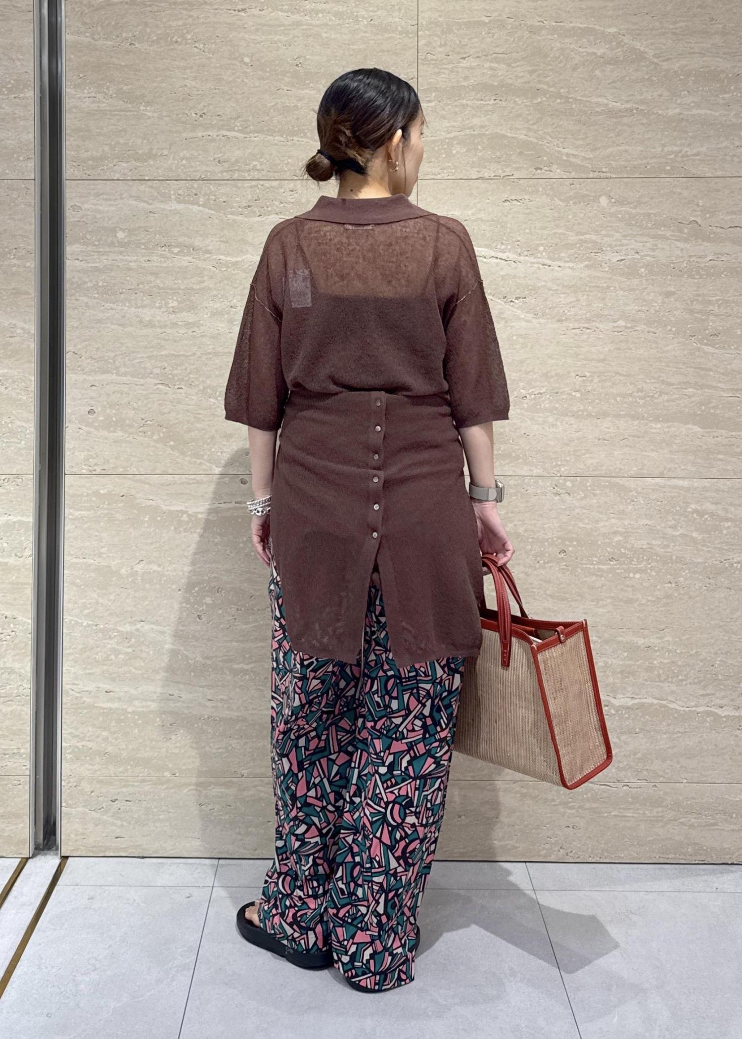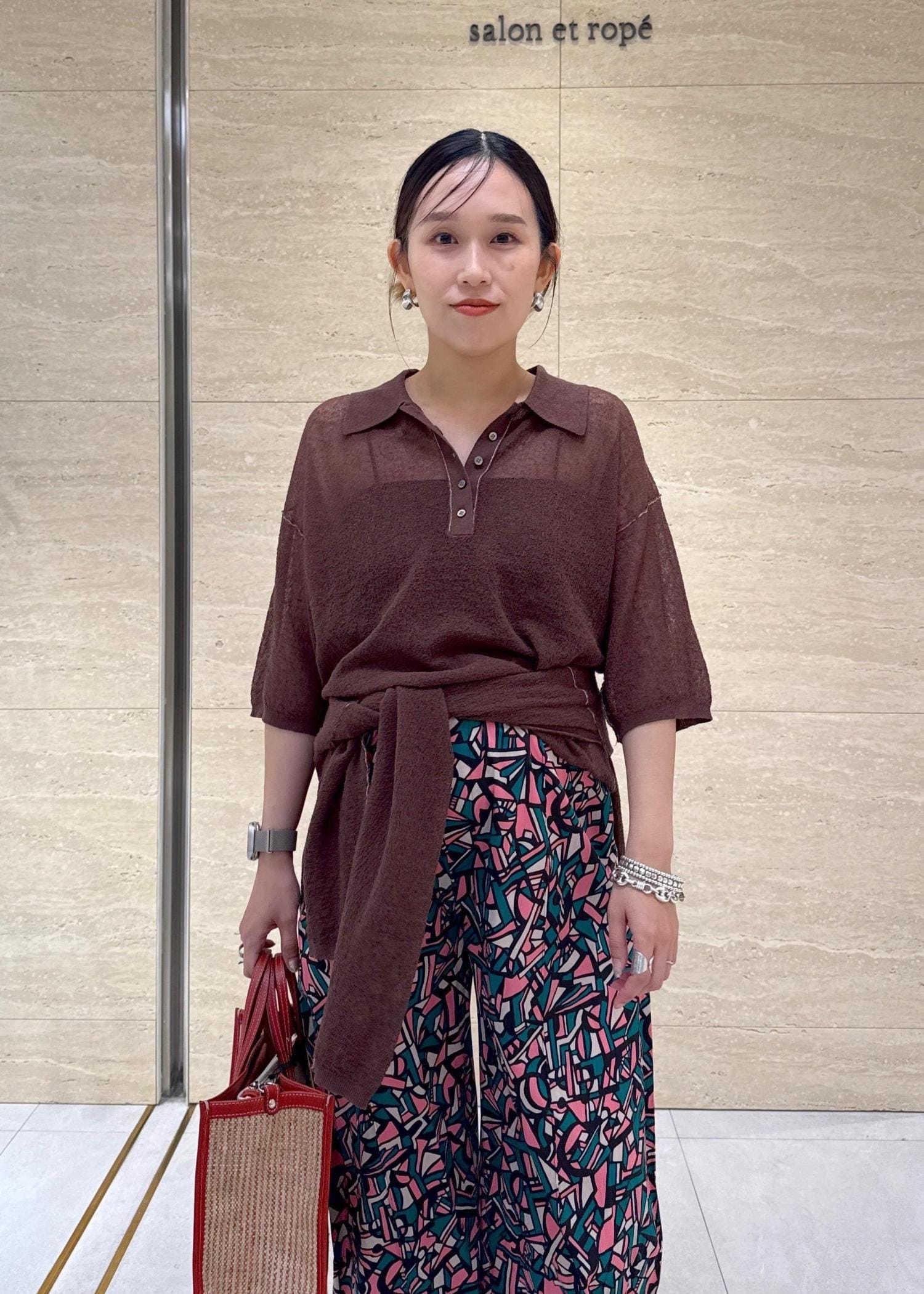 アウトレットSALON adam et ropéシアークレープクロップドポロシャツブラウン / F¥8,800レビュークロップド丈なので、ボトムにインしなくてもバランスよく着用できます。