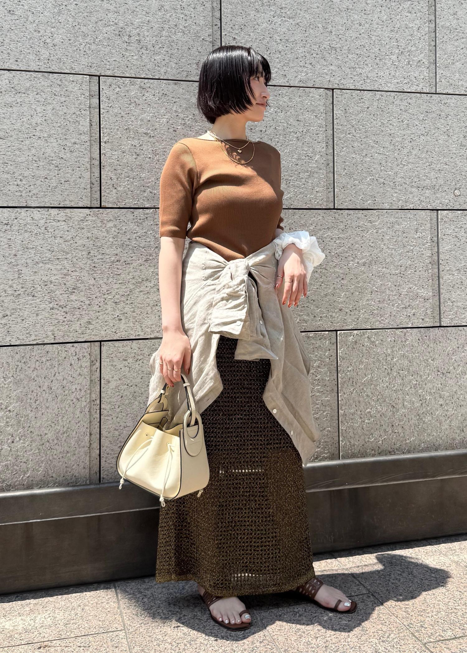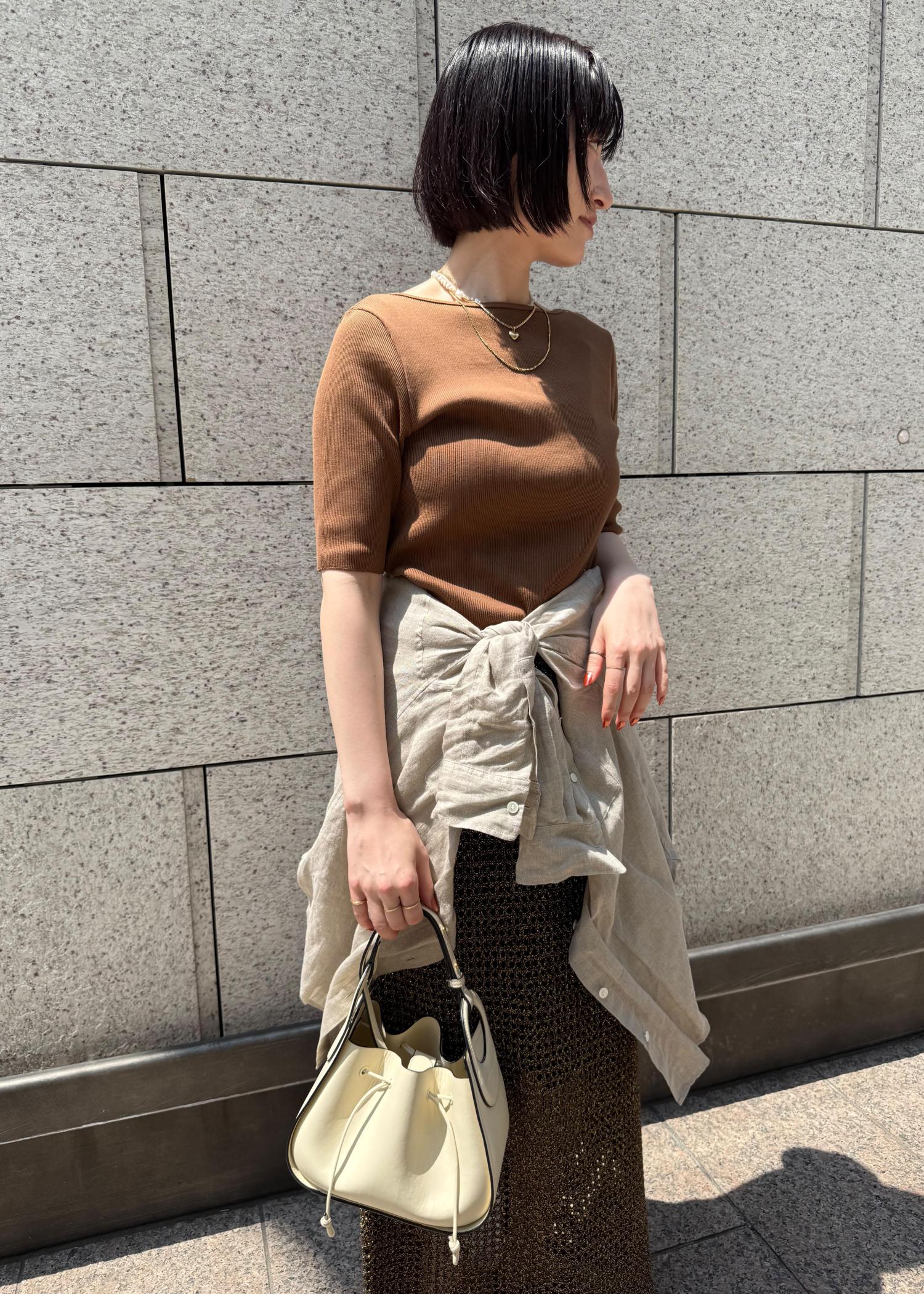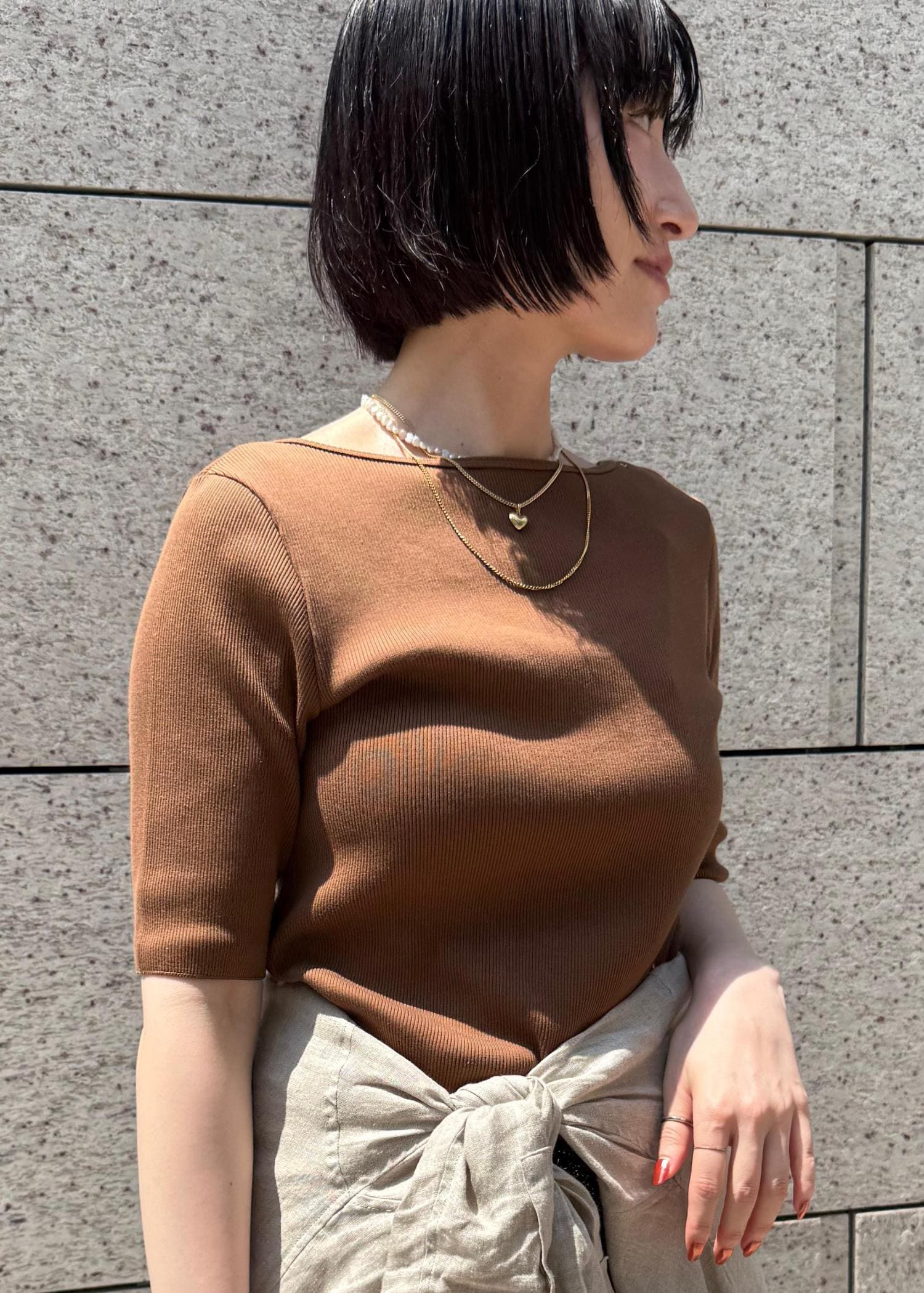 アウトレットROPÉ【洗える】テレコ5分袖ニットプルオーバーブラウン / F¥8,250レビュー161㎝の私が着用して袖丈は膝上です。チクチク感もなく、着用しているブラウンは避けもないです。