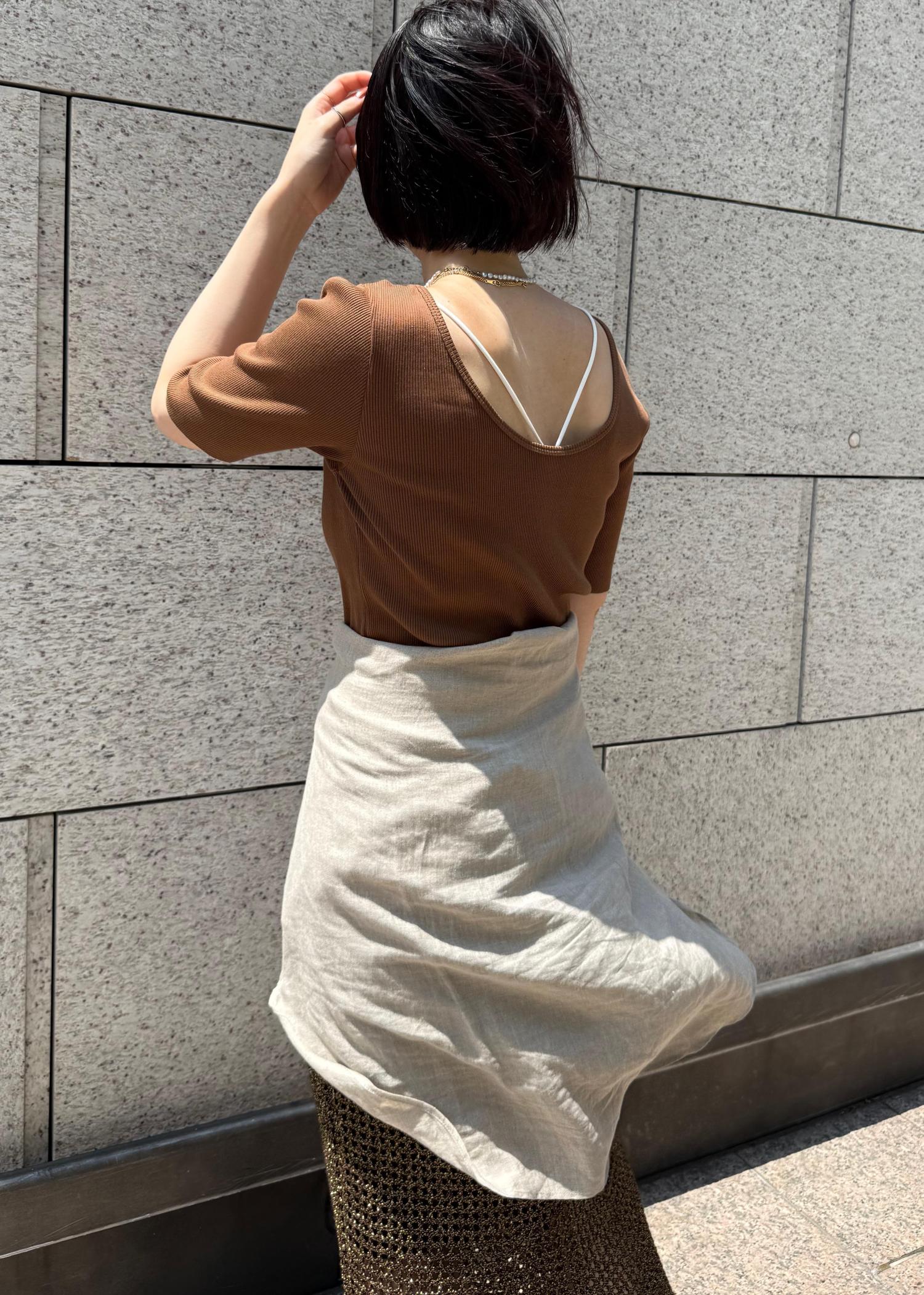 後ろが開いているのでバックデザインのインナーと合わせるとオシャレです。 -