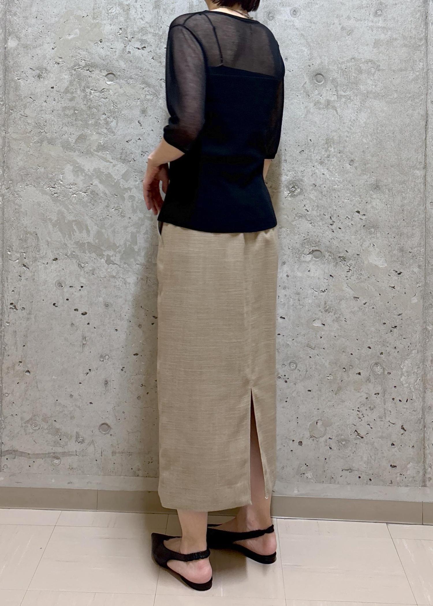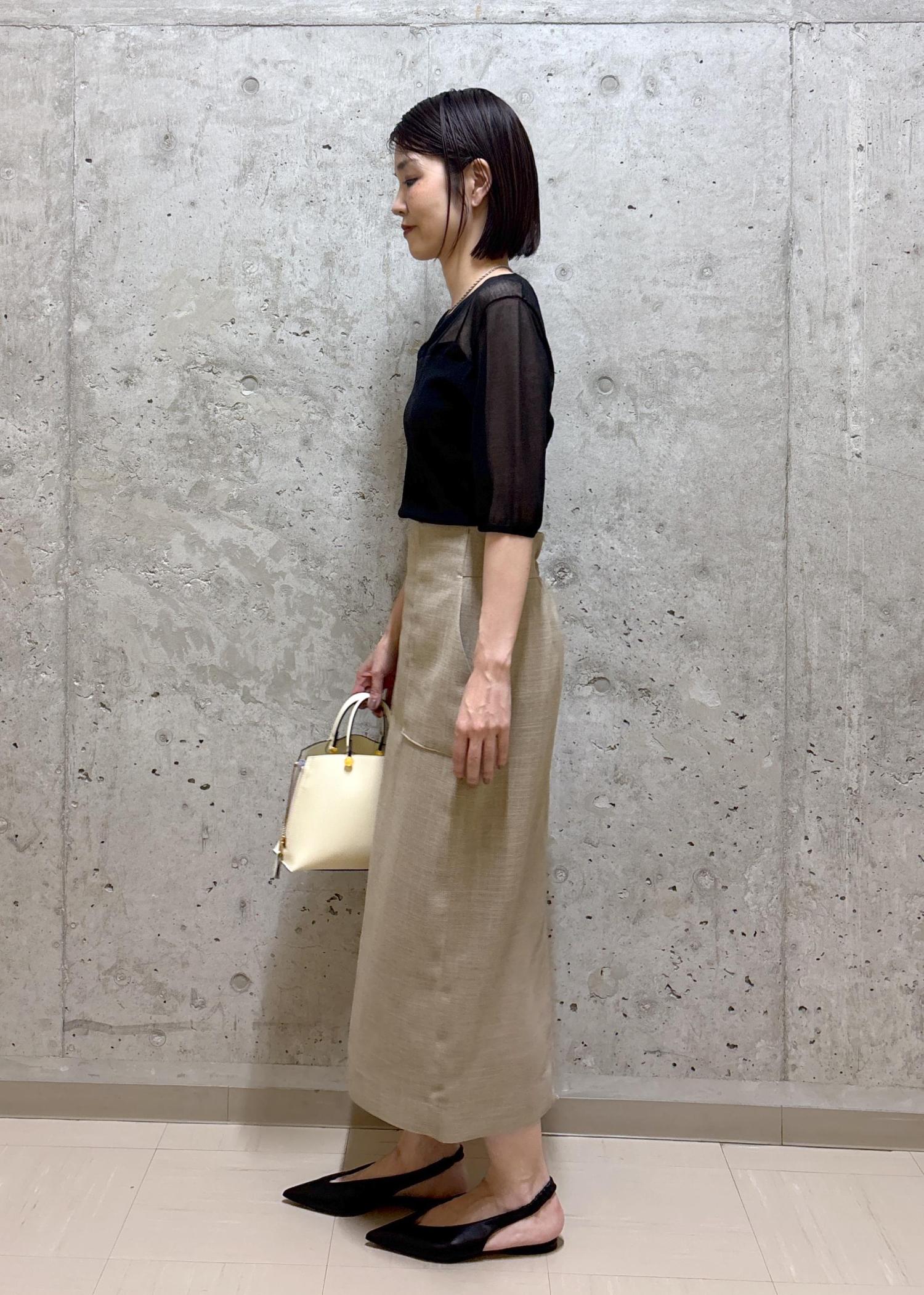 ROPÉリネンライク ポケット付きタイトスカート/イージーケアベージュ / 36¥20,900レビューウエストは手のひらが入るくらいゆとりがあり、トップスインをしてちょうど良いサイズ感です。