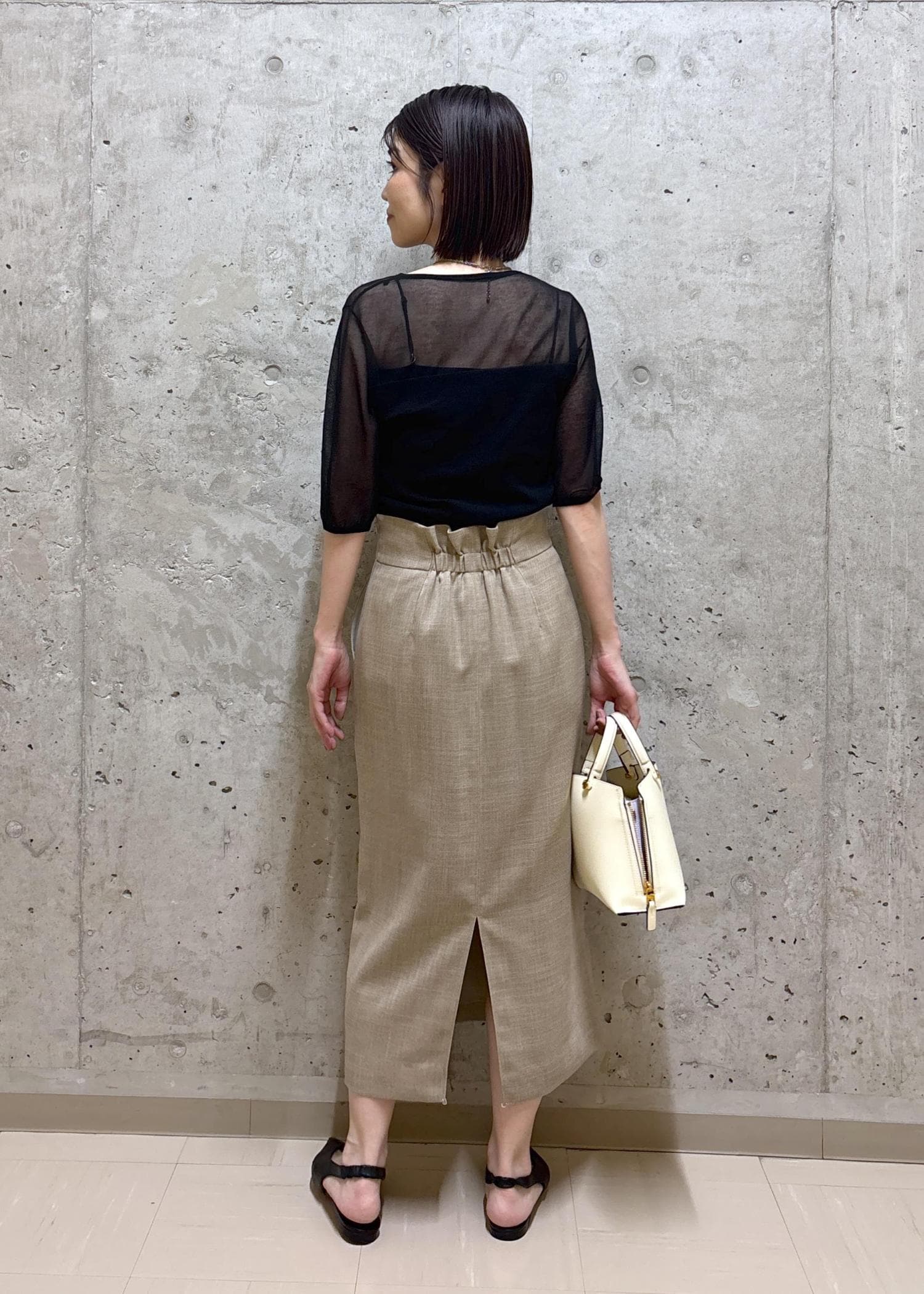 シアー感のあるニットと合わせてお出かけをイメージしてコーディネイトしました。
