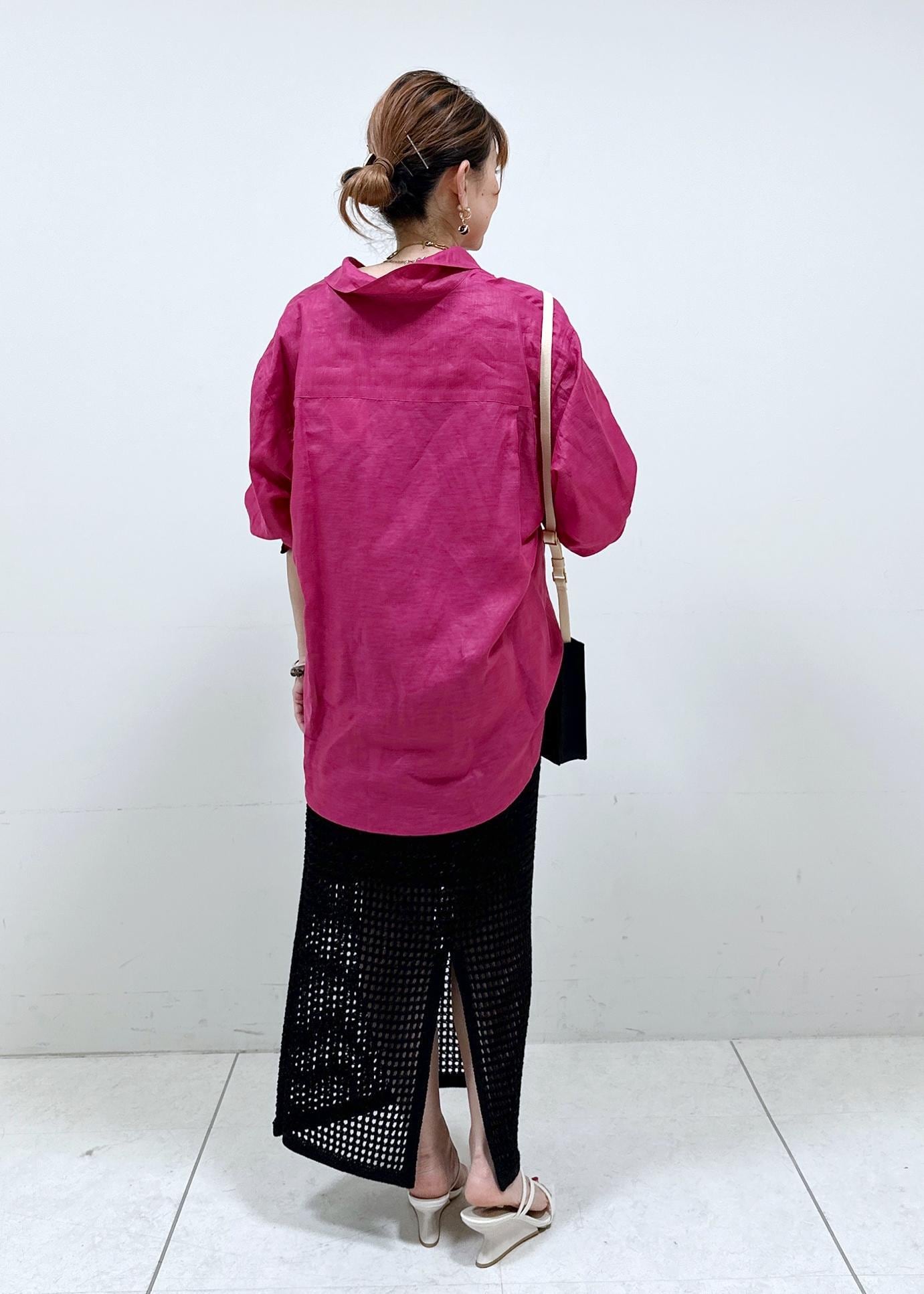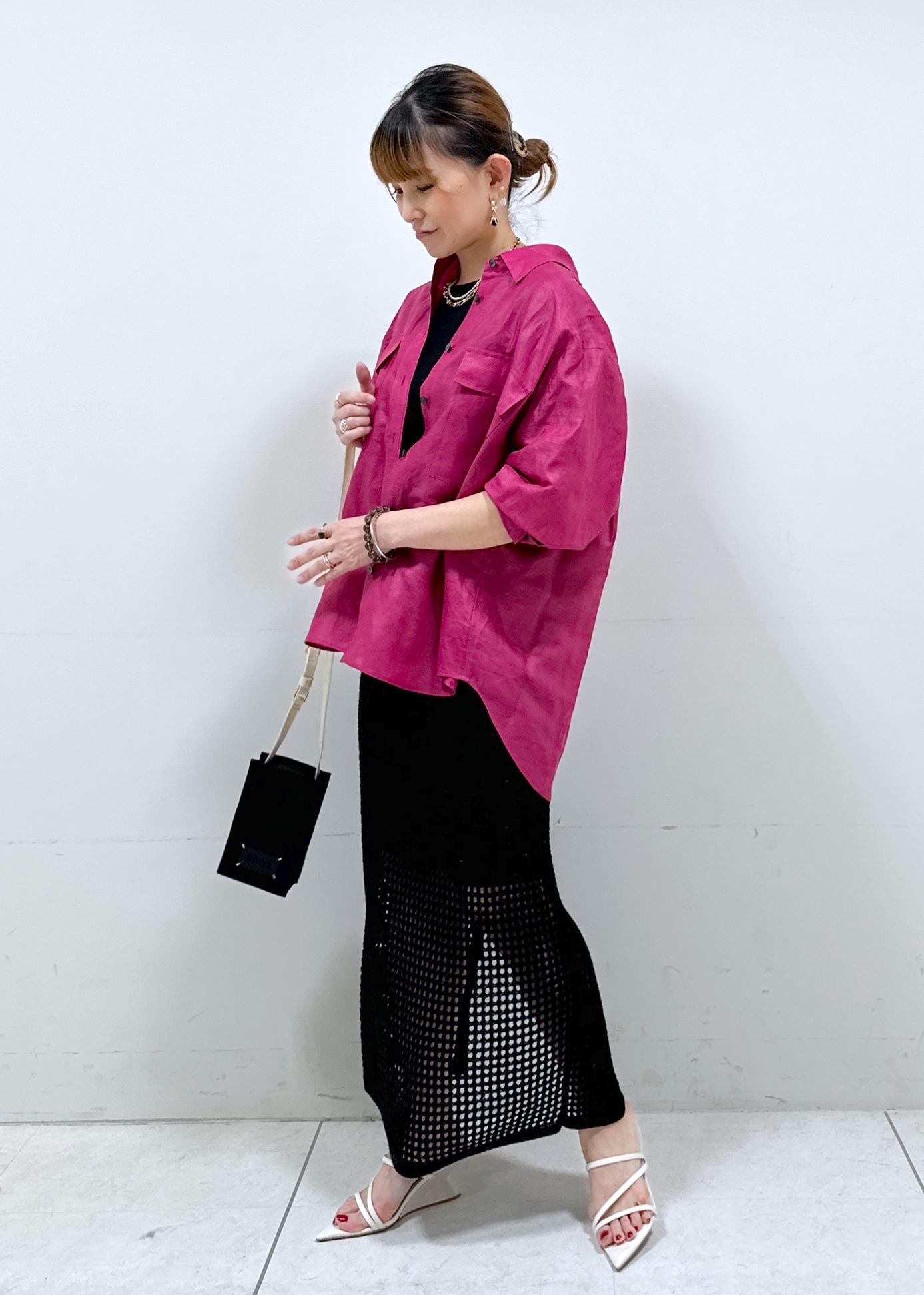 人気のリネンシャツの新色、ビビッドピンクを主役にコーディネートしました!
