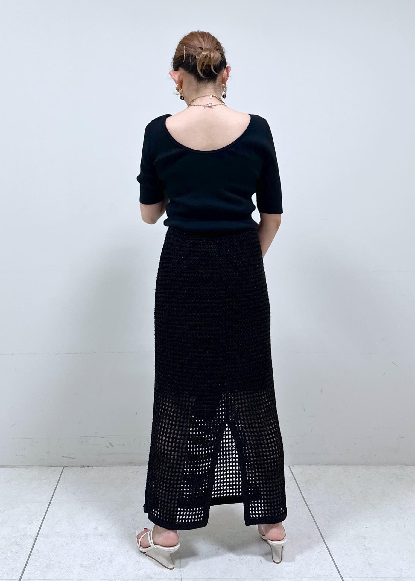 アウトレットROPÉラメメッシュスカート/セットアップ対応ブラック / 36¥13,200レビュー大きめな編み地で編まれているニットスカートです。