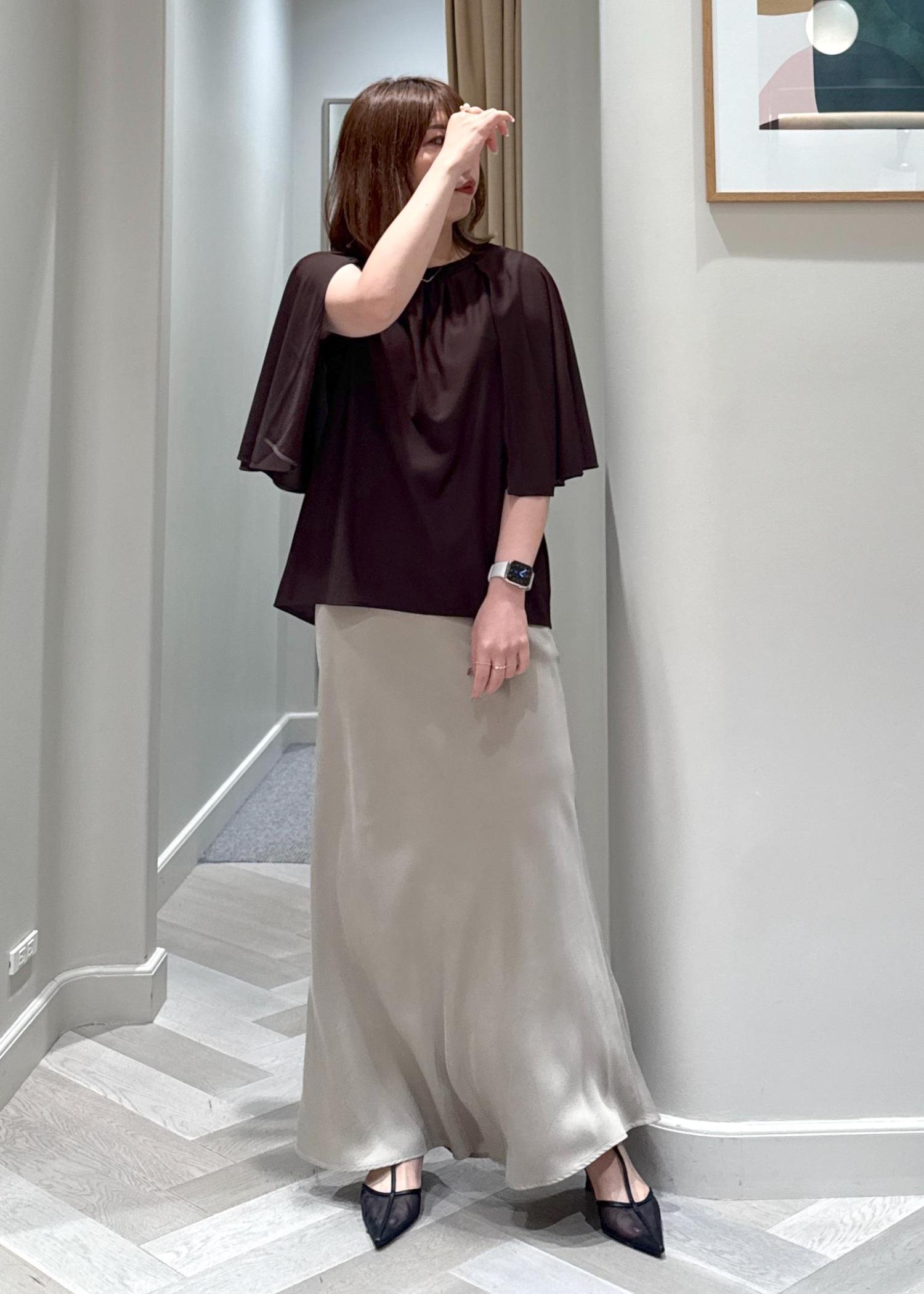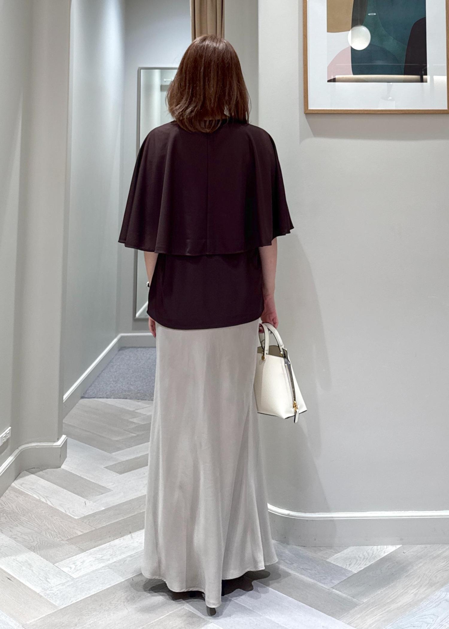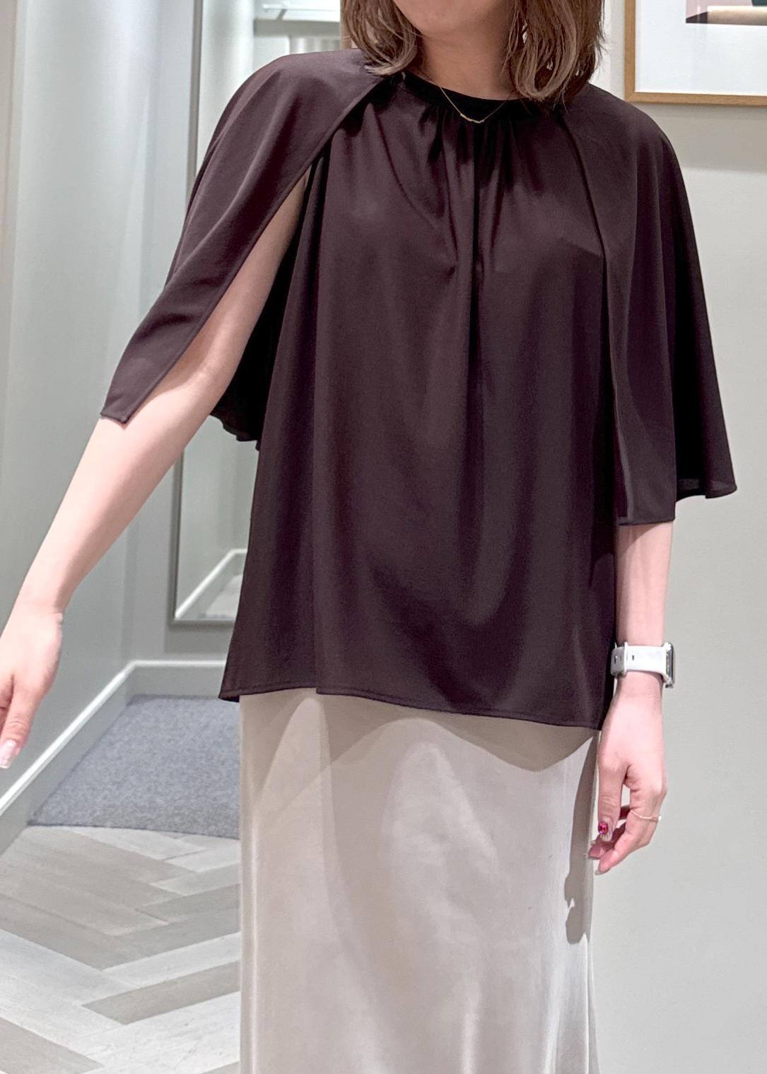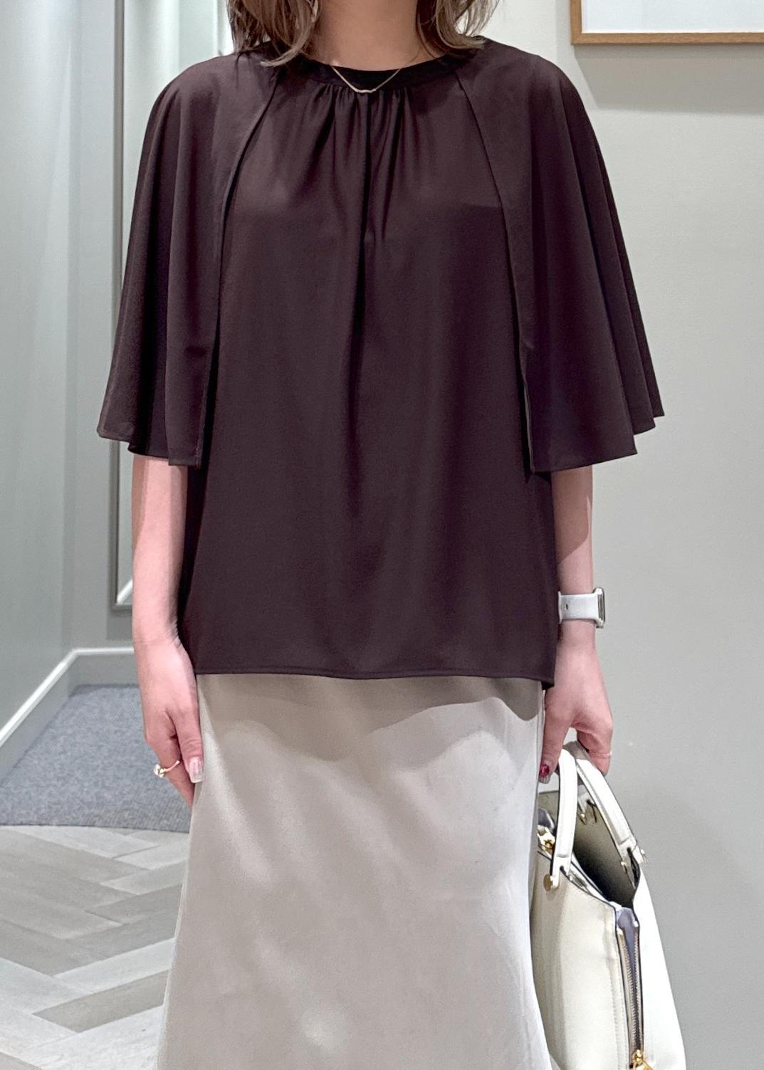 ROPÉ【洗える】ケープスリーブ リンキングブラウスダークブラウン / F¥13,200レビューケープを羽織っている様にも見えるデザイントップス。