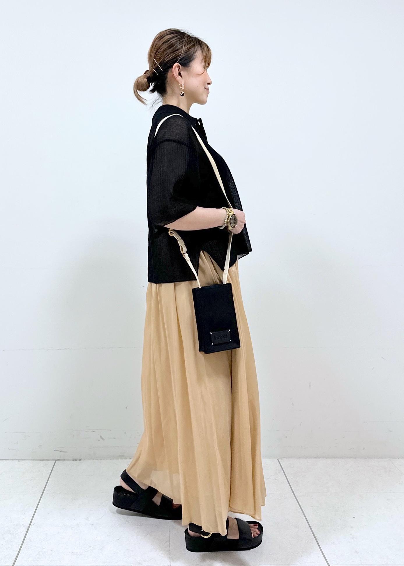 足元も太ベルトサンダルでカジュアルダウンしつつも、大人の女性らしさを意識して仕上げました。