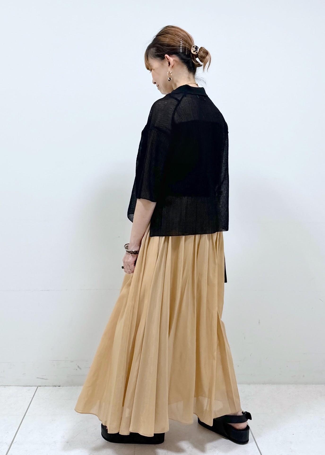 ウエストはゴムの様なテープタイプで、ゆったり履けつつも、しっかりウエストで止まり安心感のあるスカートです。