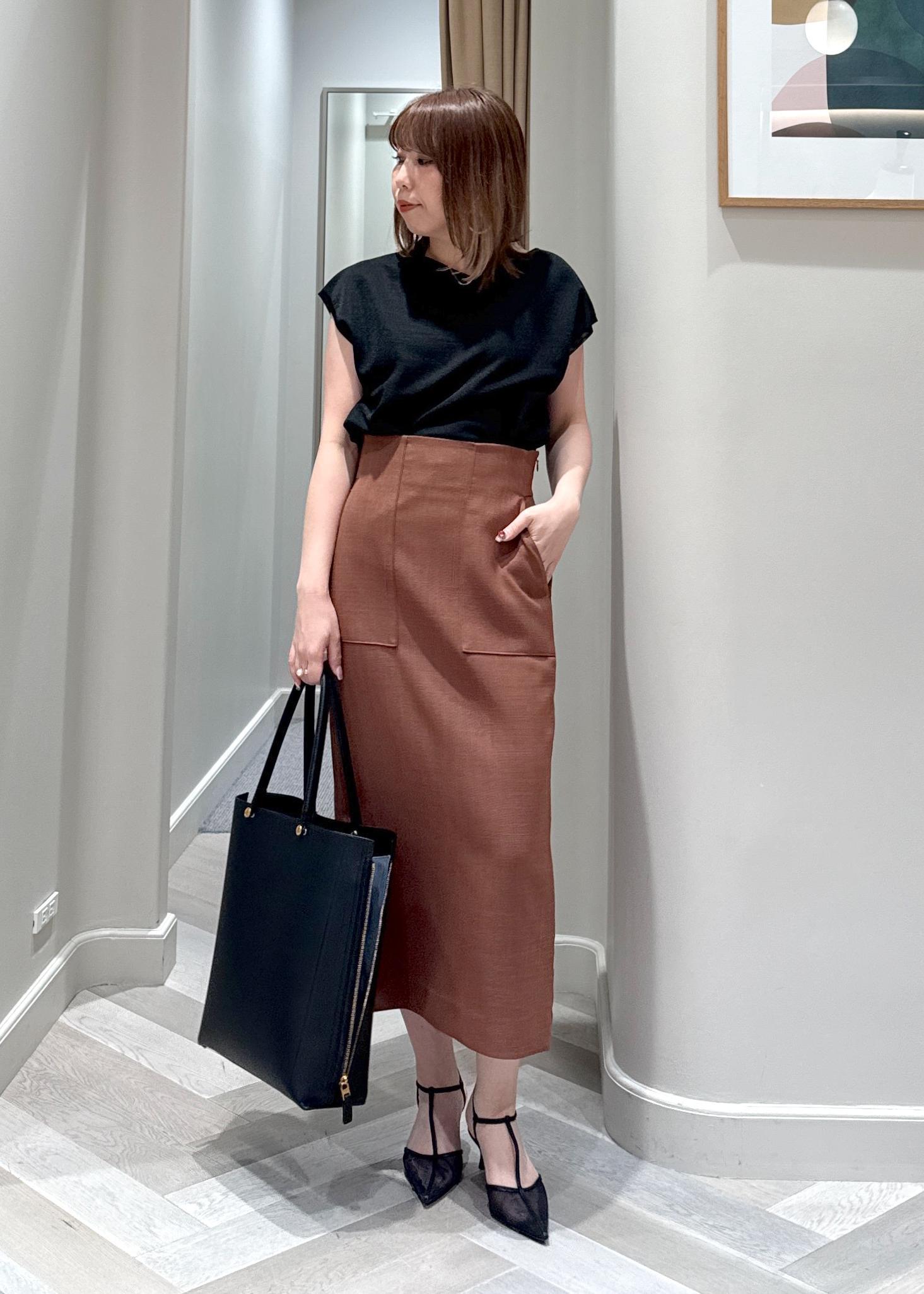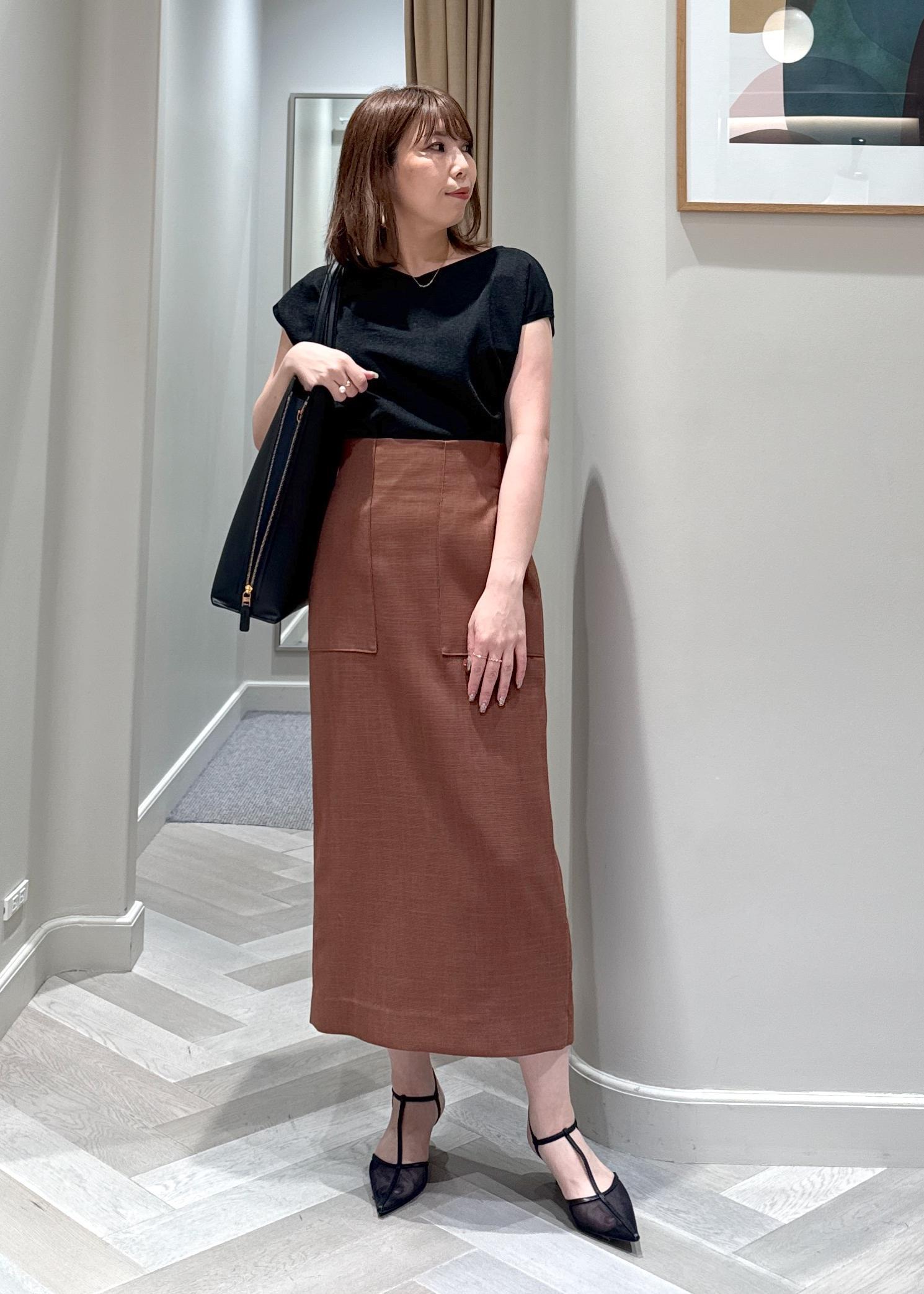 ROPÉリネンライク ポケット付きタイトスカート/イージーケアブラウン / 38¥20,900レビューさらっとした生地で見た目ほど厚くないので