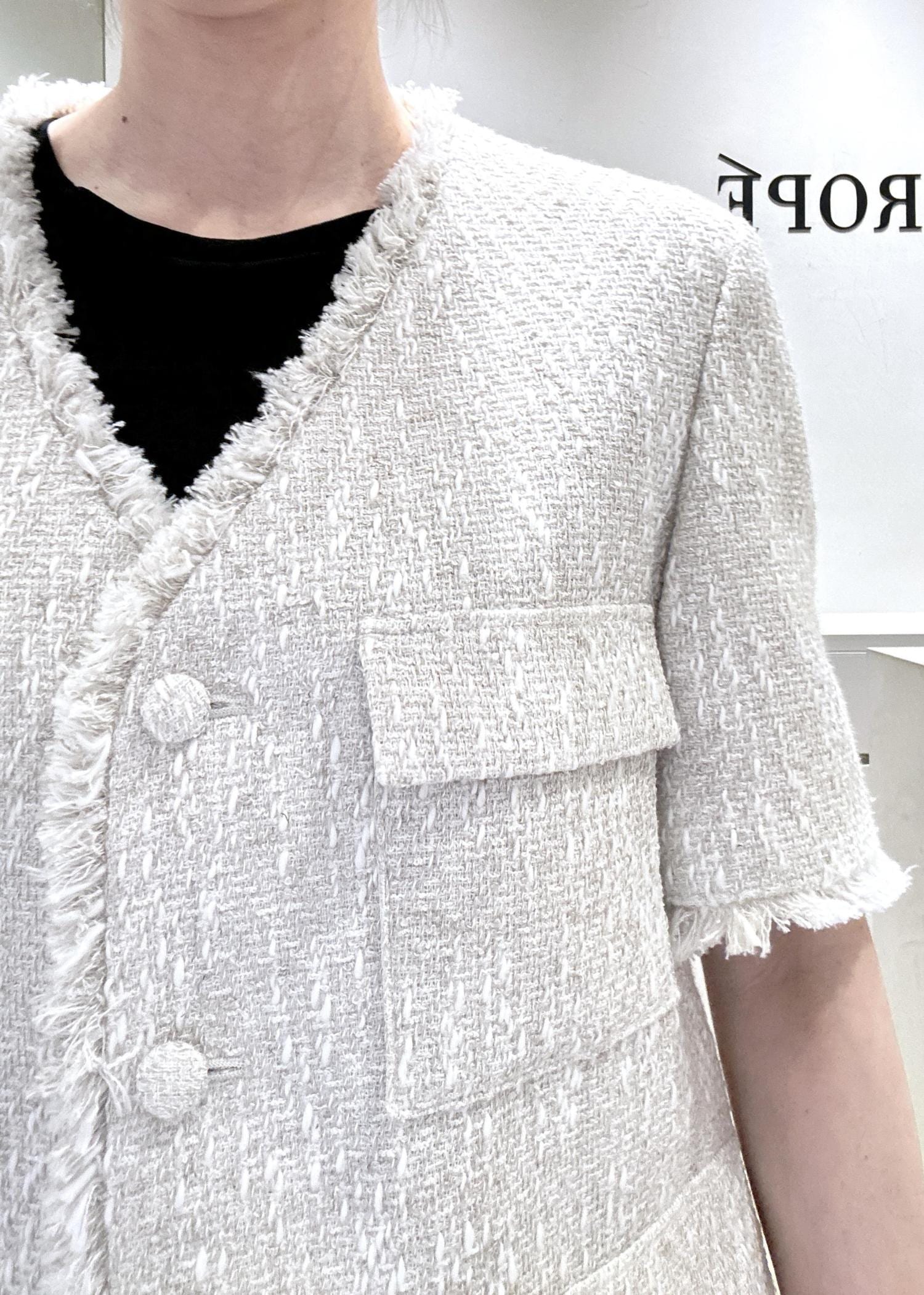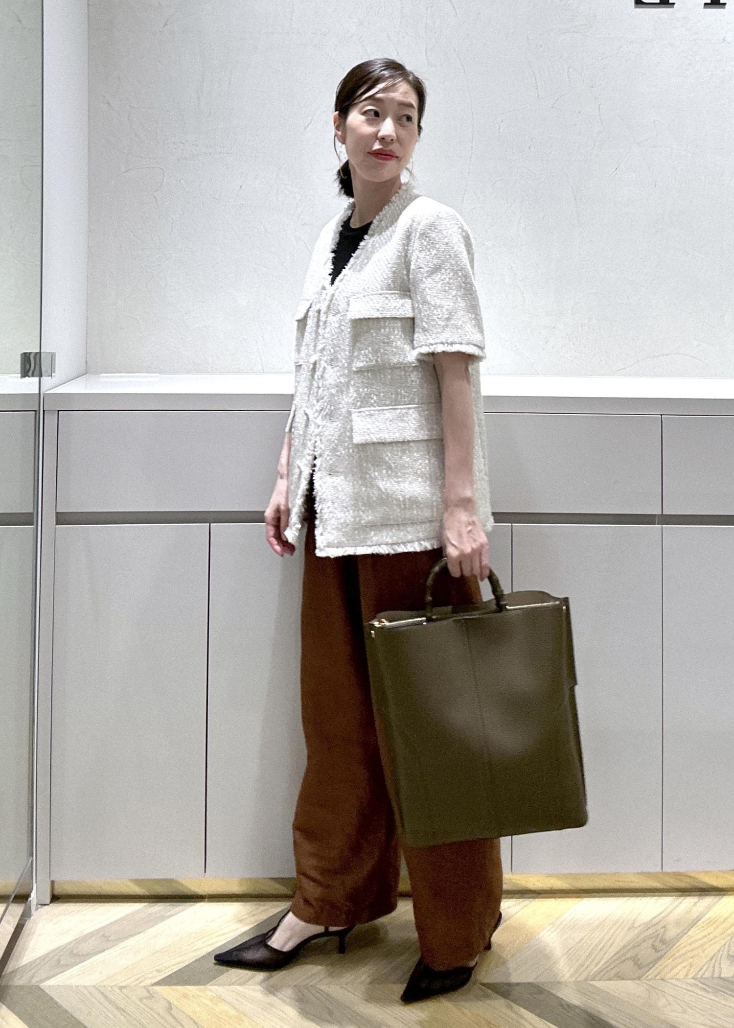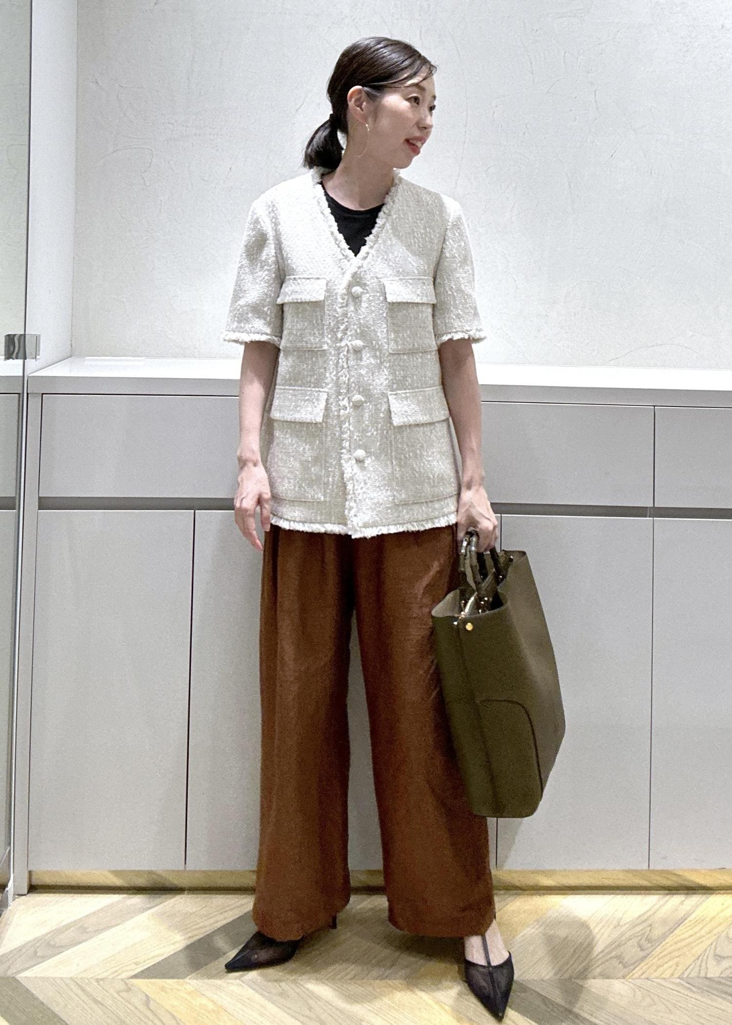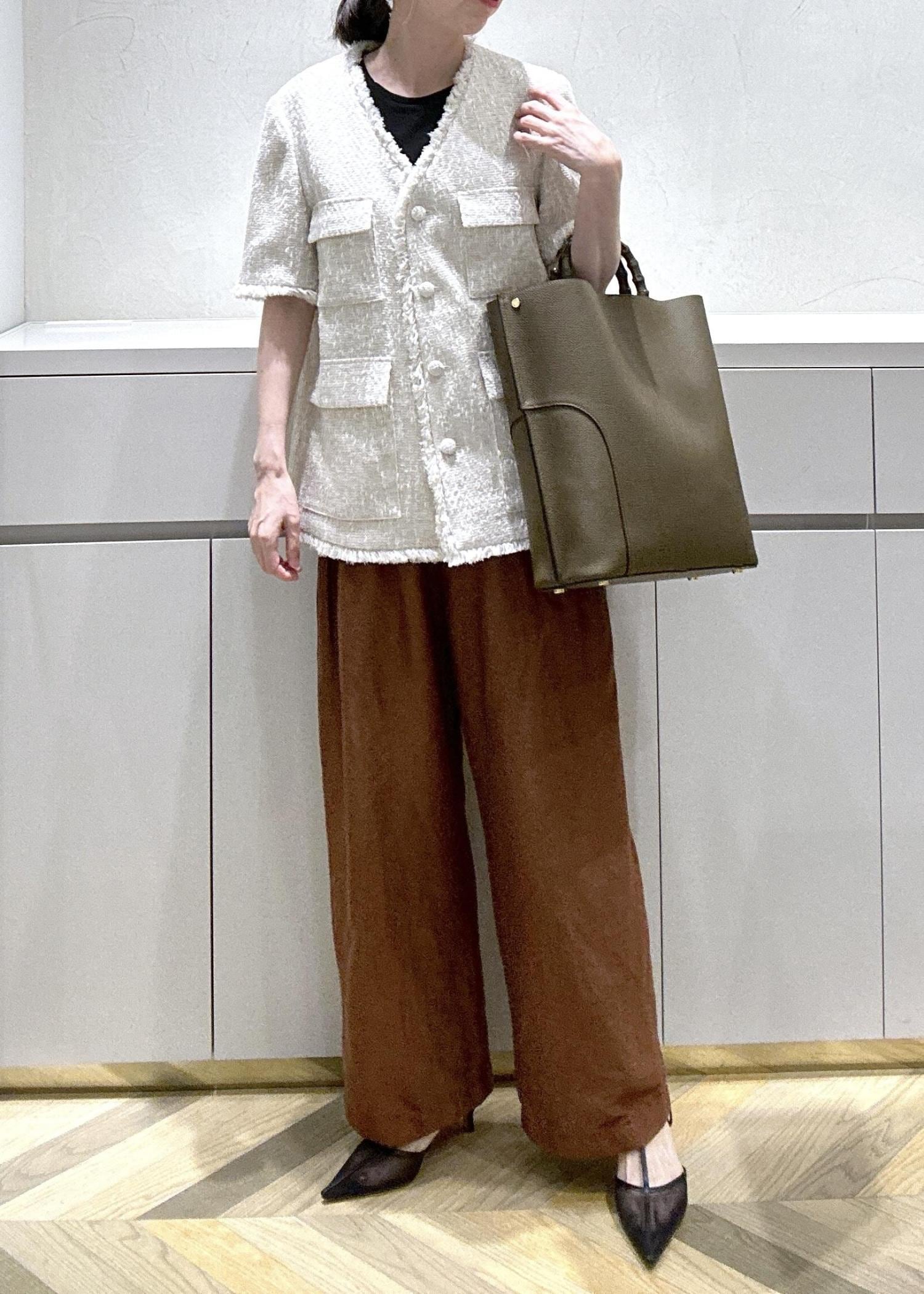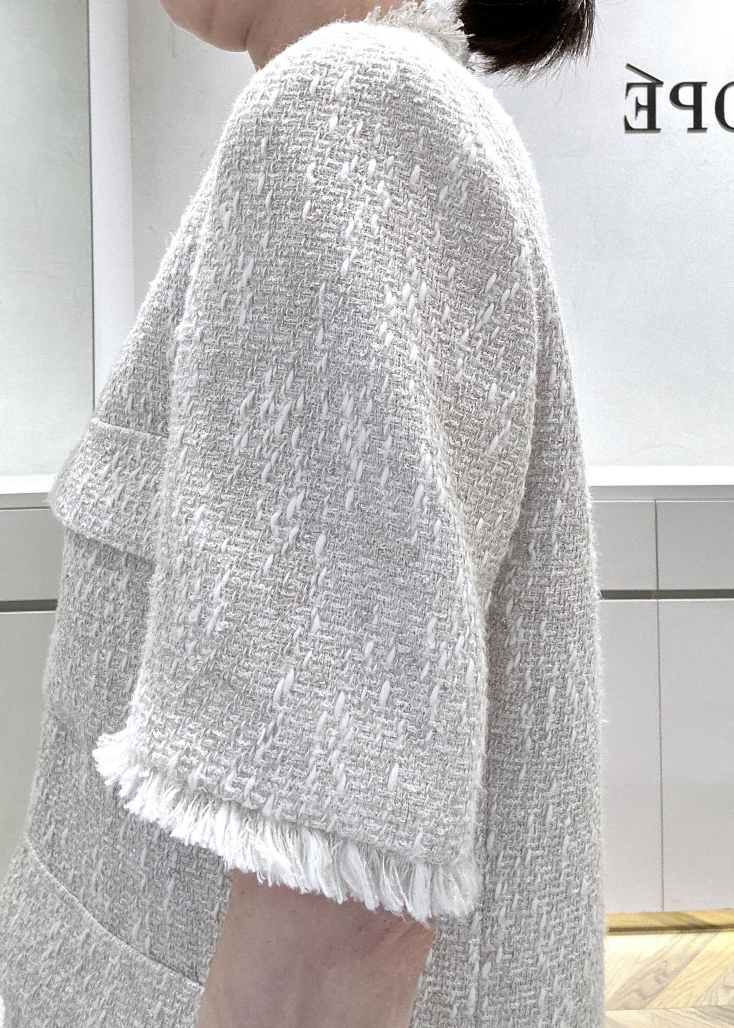 サマーツイードなので、生地の見た目にも重さがなく夏でもすっきりと着られます。