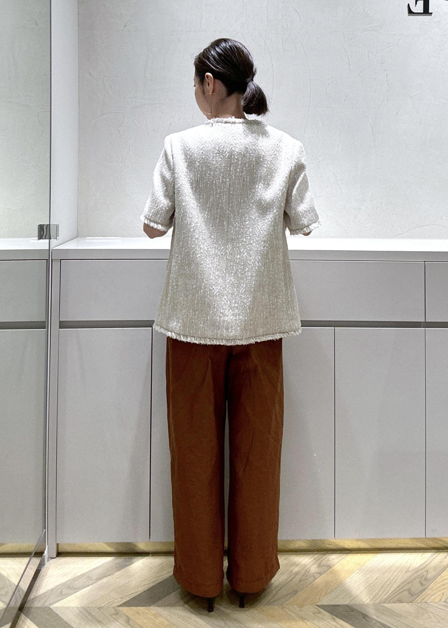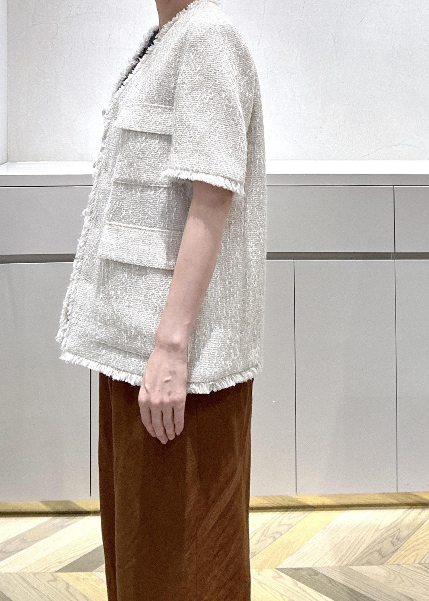 アウトレットROPÉサマーツイードハーフスリーブジャケットオフホワイト / F¥23,100レビューワンサイズの作りで、腕周りはすっきりとしたサイズ感です。