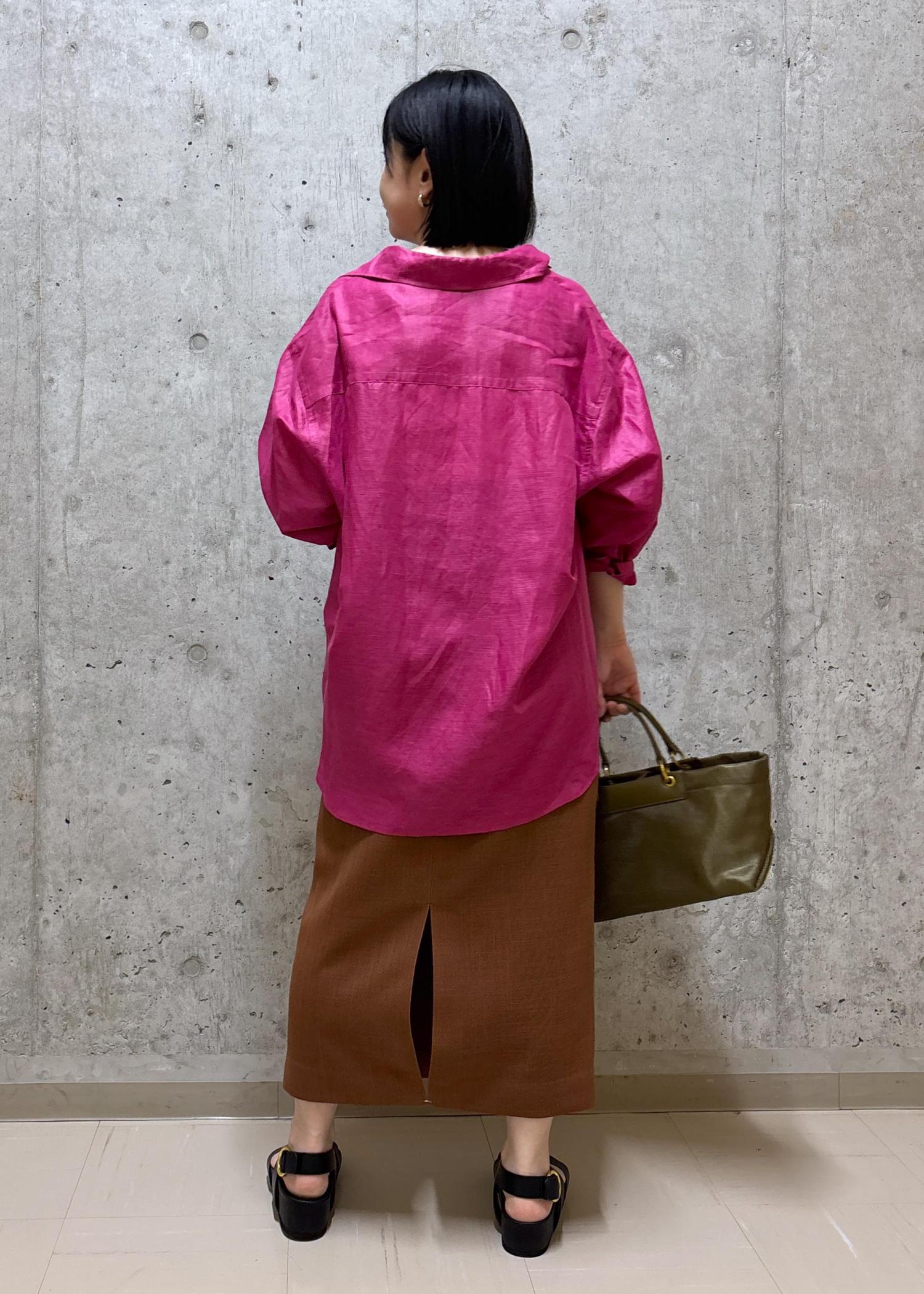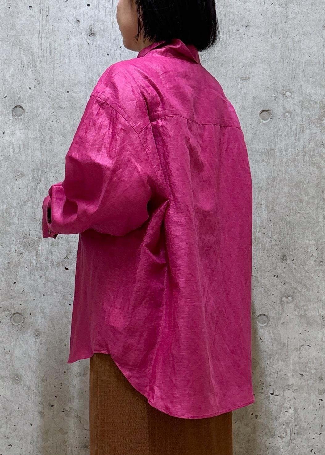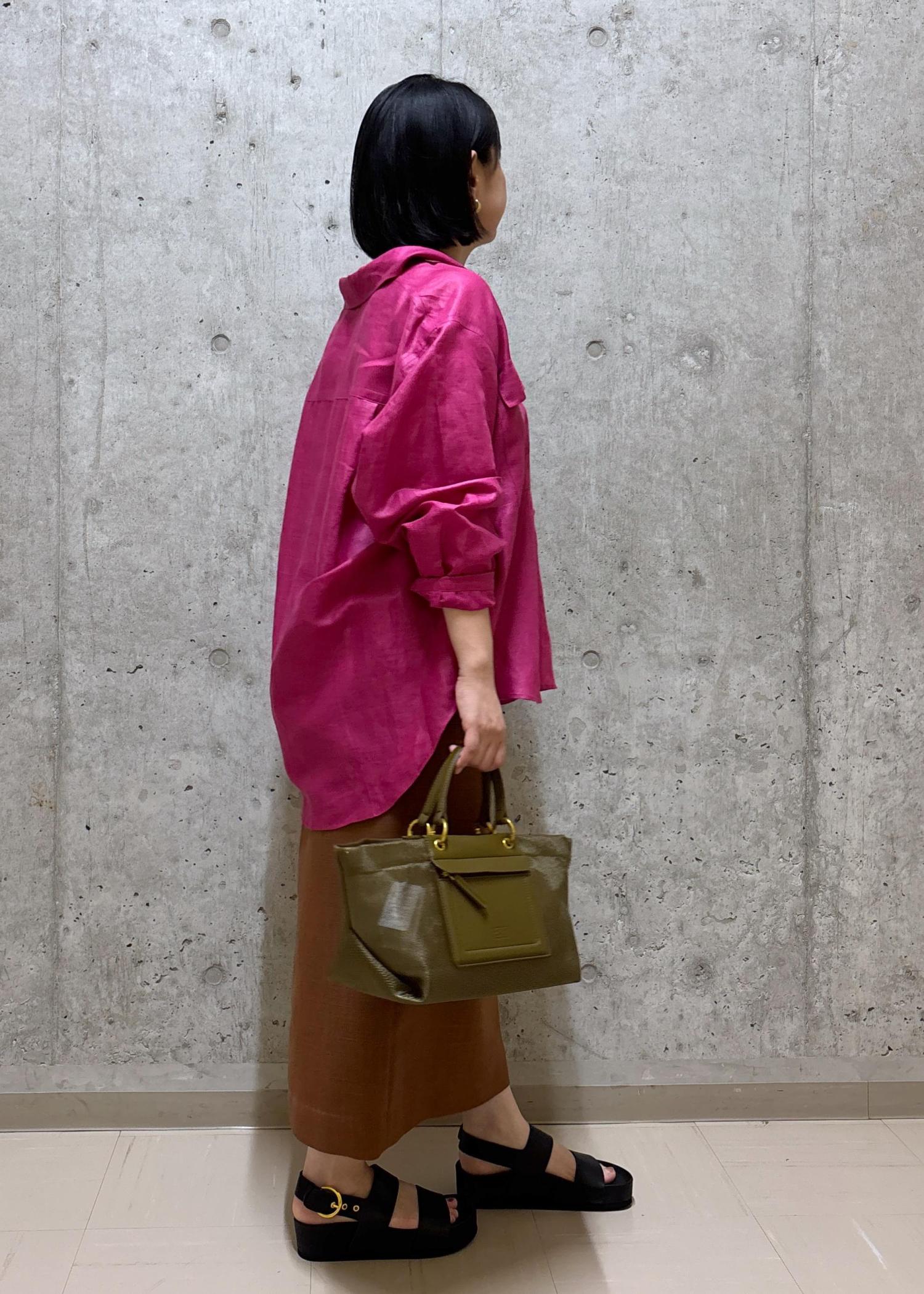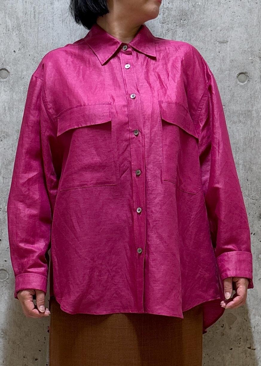 アウトレットROPÉブライトリネン フラップシャツブラウス/洗えるピンク / F¥16,500レビュー152cmでFサイズ着用