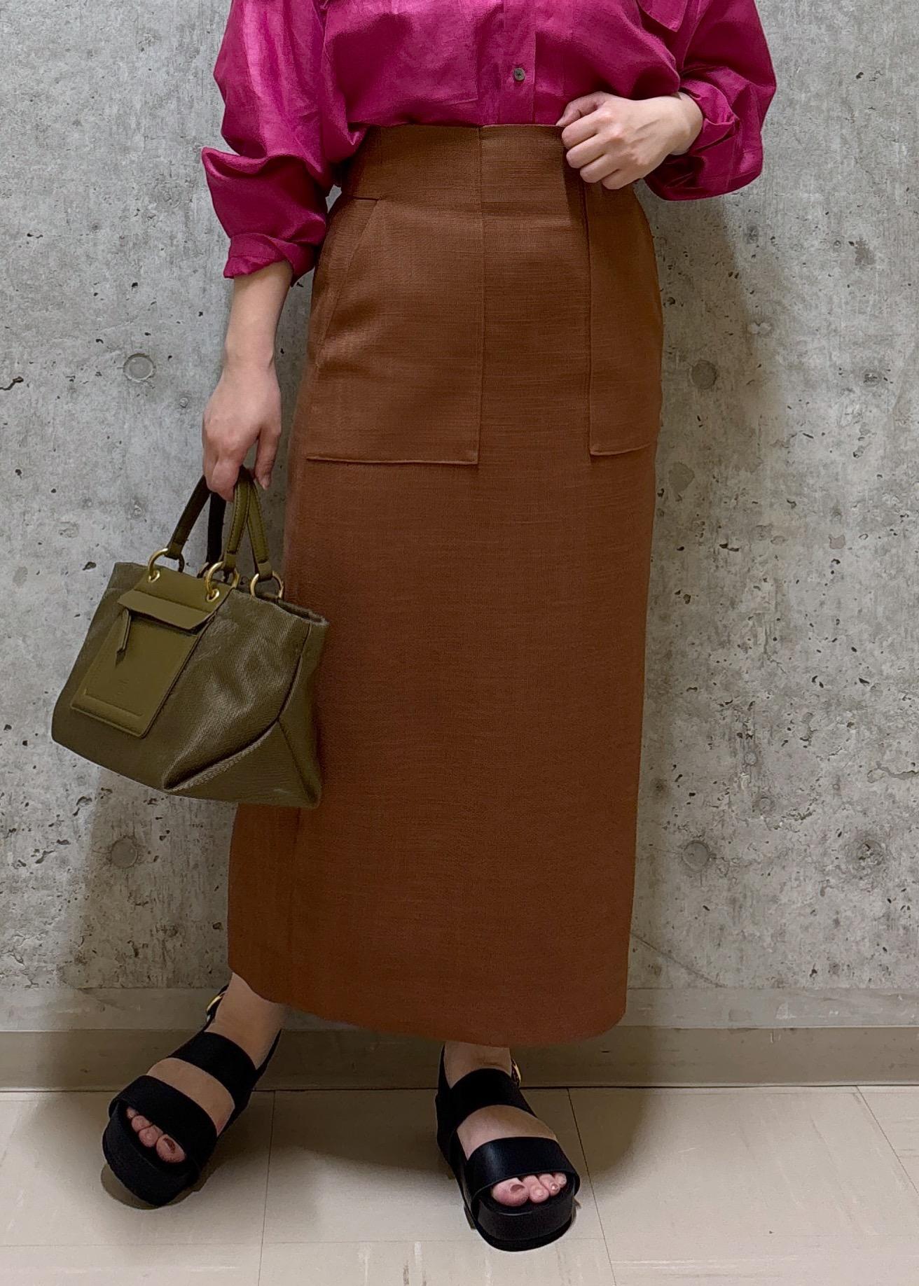 ROPÉリネンライク ポケット付きタイトスカート/イージーケアブラウン / 38¥20,900レビュー152cmで38サイズ着用