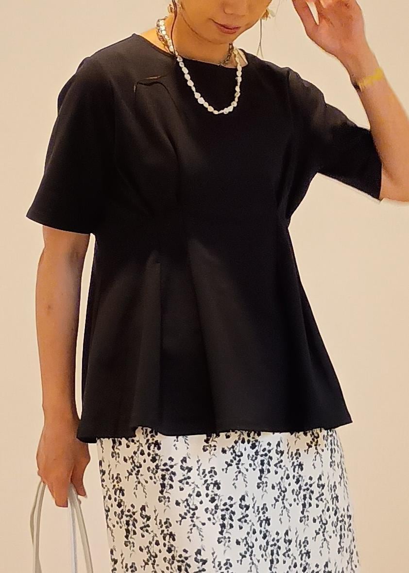 ROPÉ PICNIC(接触冷感×UVカット)ウエストタックペプラムトップスブラック / 38¥3,993レビュー厚手な生地感で透け感はなく、程よいハリがあるのでタックの立体感がキレイです。透け感がなく上品なシルエットで高見えします。Tシャツ感覚でサラッと着るだけでオシャレみえするトップスはキレイめでもカジュアルでも着回しに活躍します!