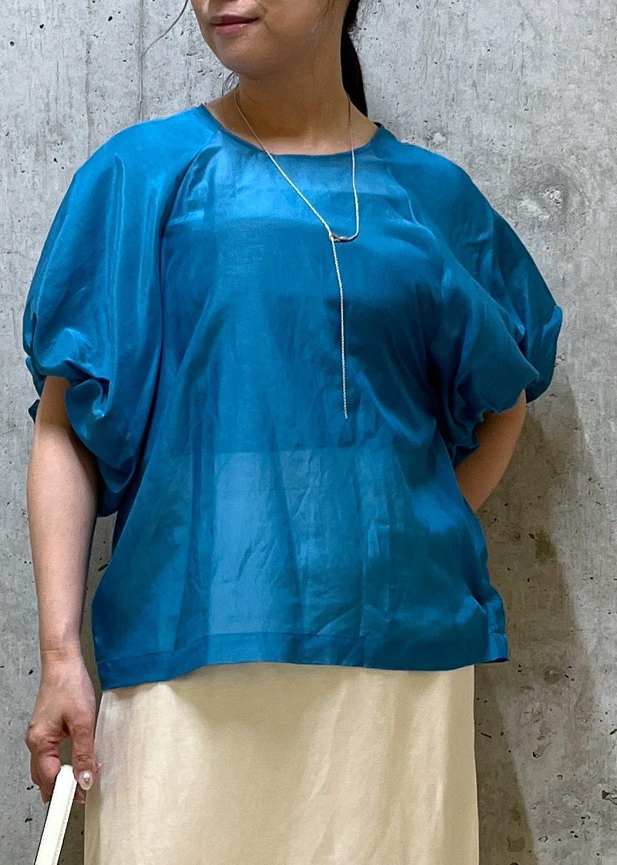 程よいシアー感があり、大きめのバルーン袖も重たく見えません。