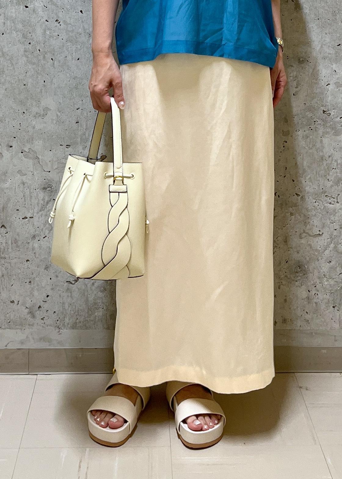 夏らしいブルーとシロのカラーの併せで爽やかな夏のお出かけコーデです。