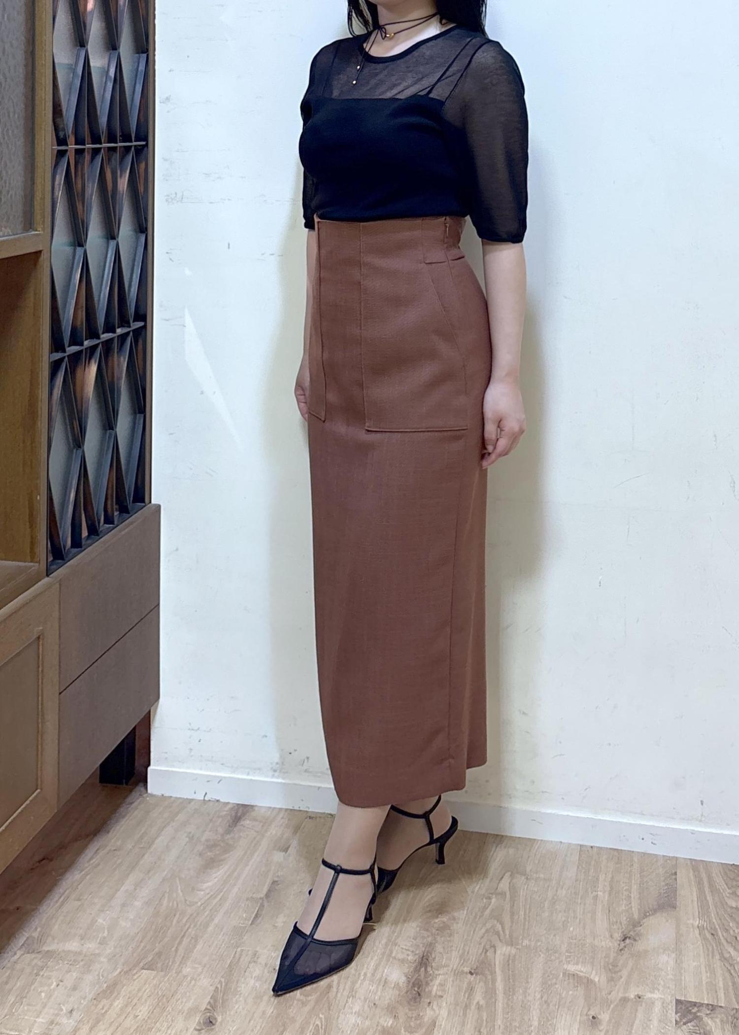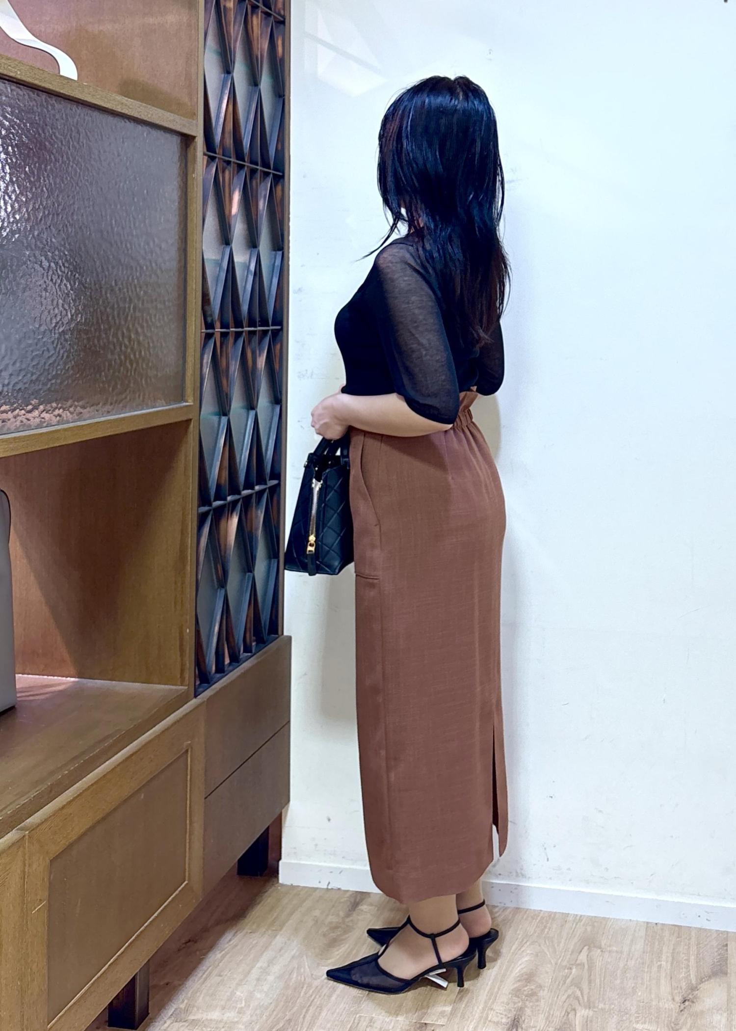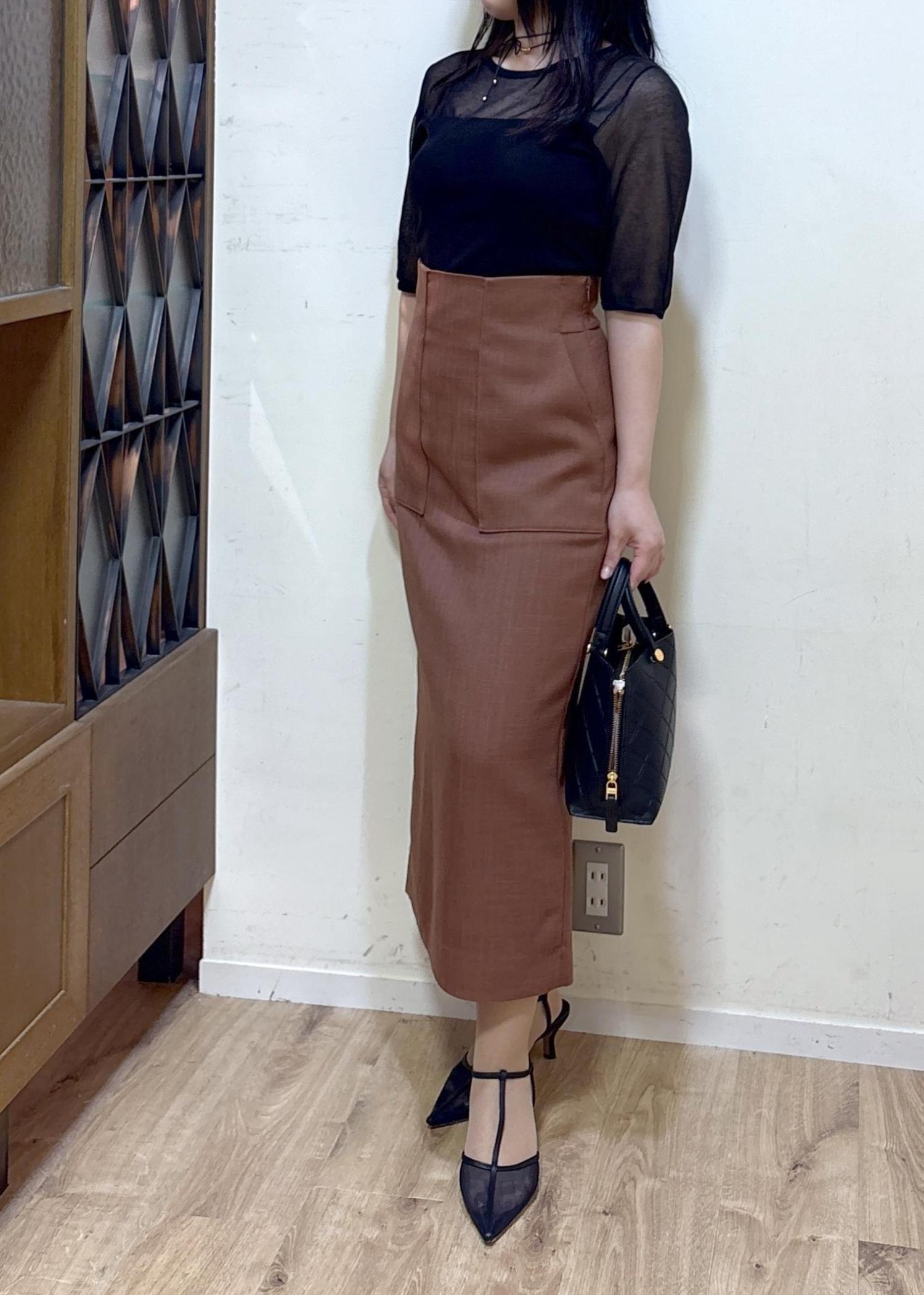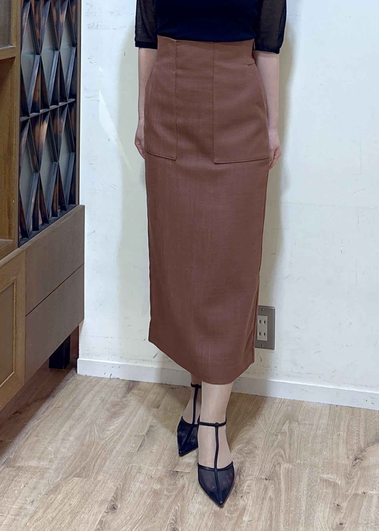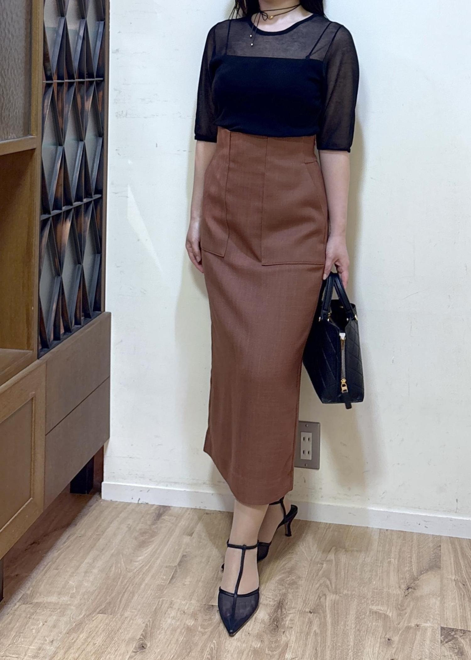 ROPÉリネンライク ポケット付きタイトスカート/イージーケアブラウン / 36¥20,900レビュー身長152cm 36サイズ着用