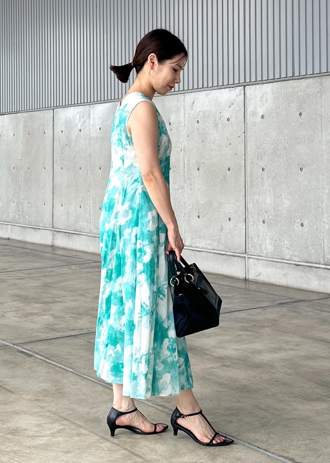 さりげなくウエストシェイプされていて、裾のフレアとのバランスが綺麗です。