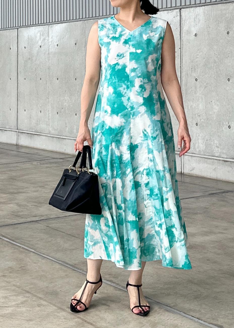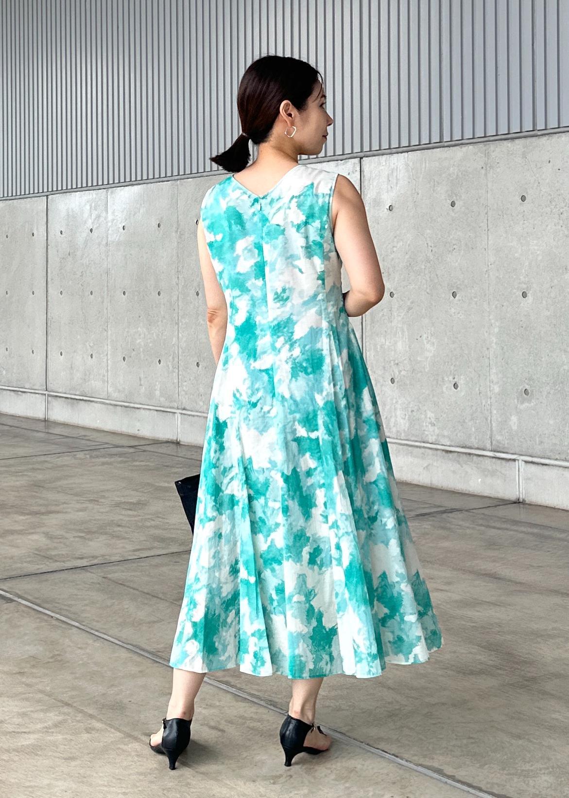 アウトレットROPÉ【DEVEAUX(デヴォー)】Aラインフレアワンピース/洗えるグリーン / 36¥25,410レビュー身長156cm、36サイズ着用。