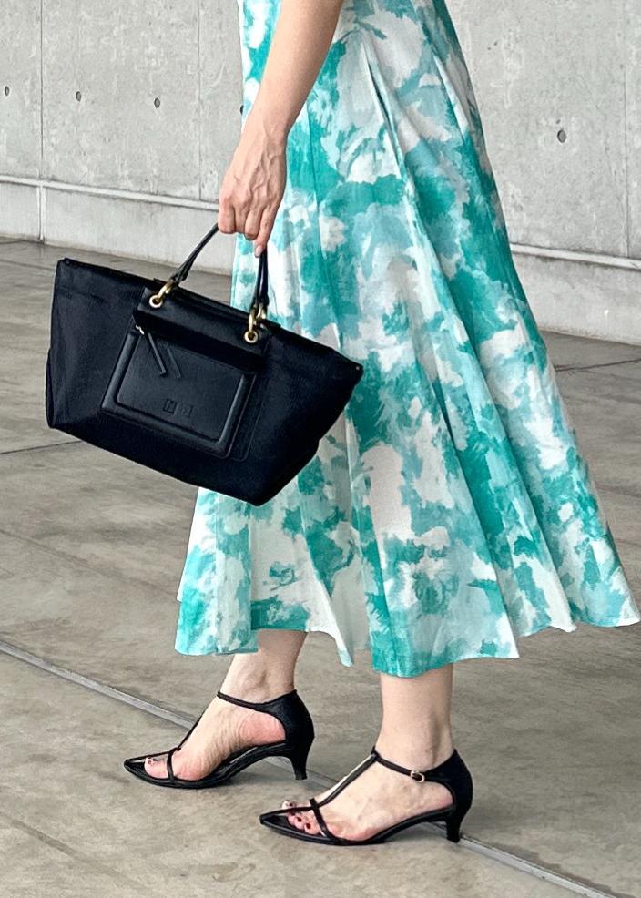 マキシ丈ではなく、足首はしっかりと見える丈感です。