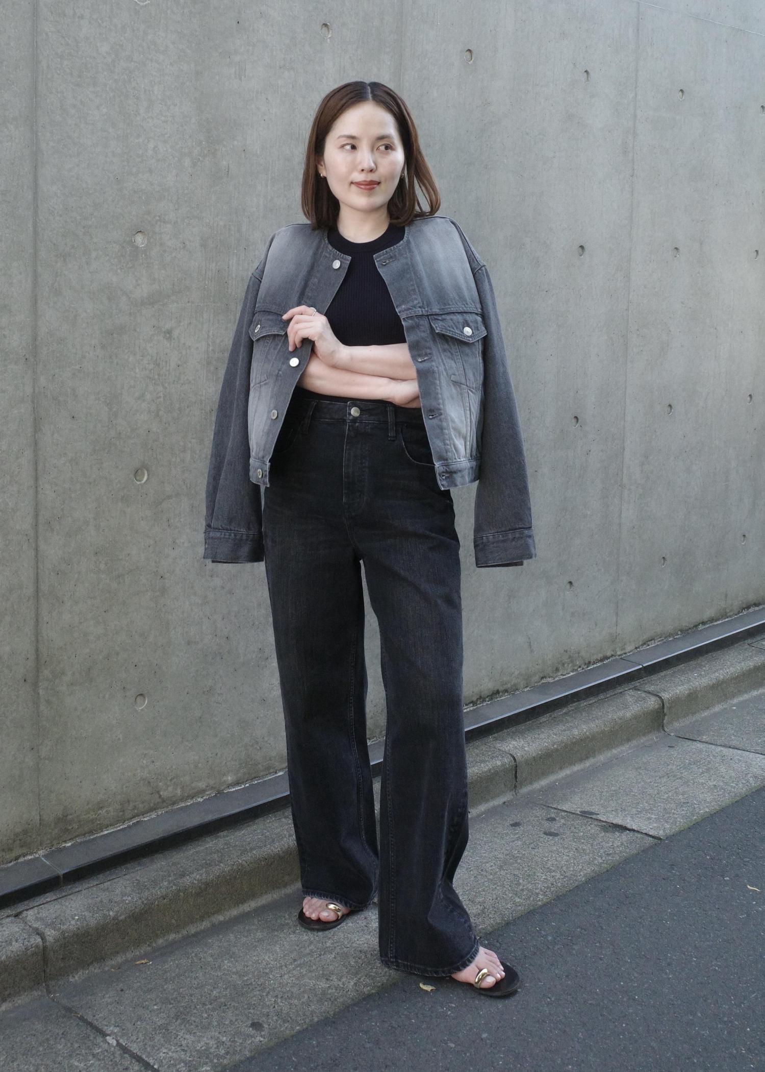 合わせたデニムはHealthy DENIMの人気モデルPink Pepperの別注ブラック。