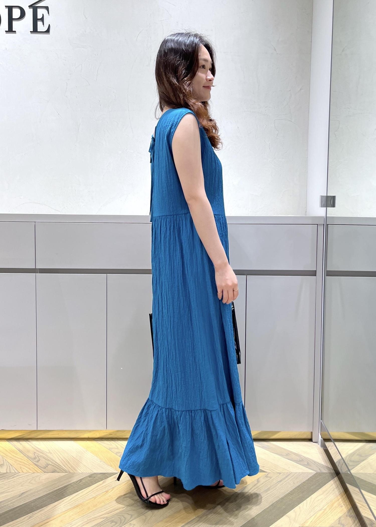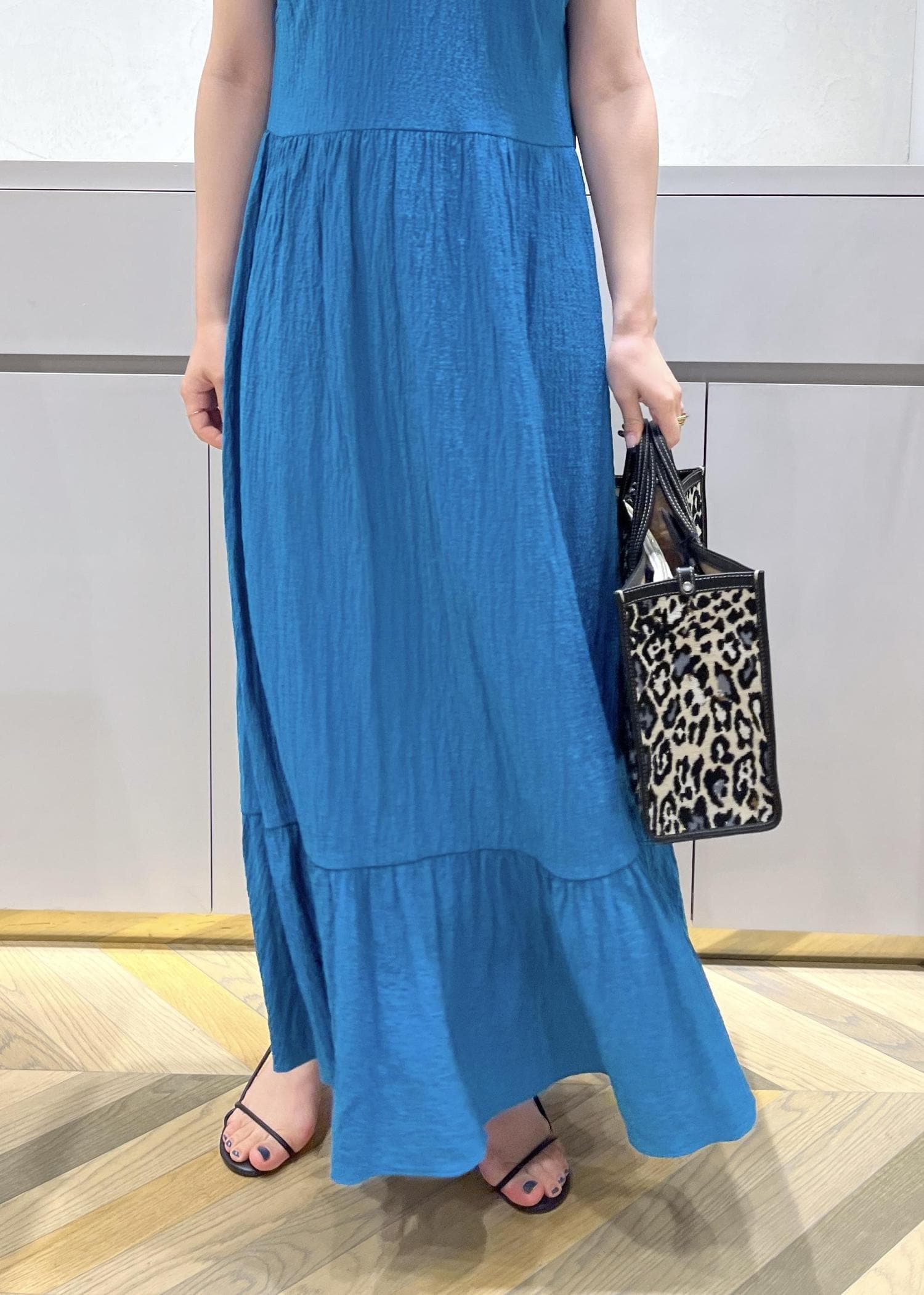 ウエストの切り替えと裾のティアードが動きの出る、1枚でナチュラルに華やか見えするデザインです♪